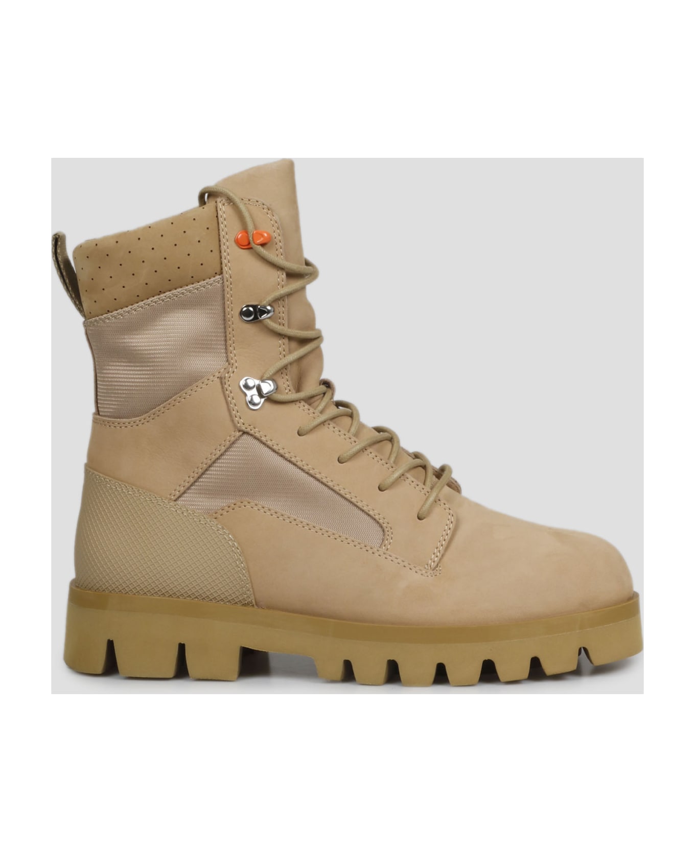 Heron Preston lace-up boots, in suede with nylon panels. - Round toe