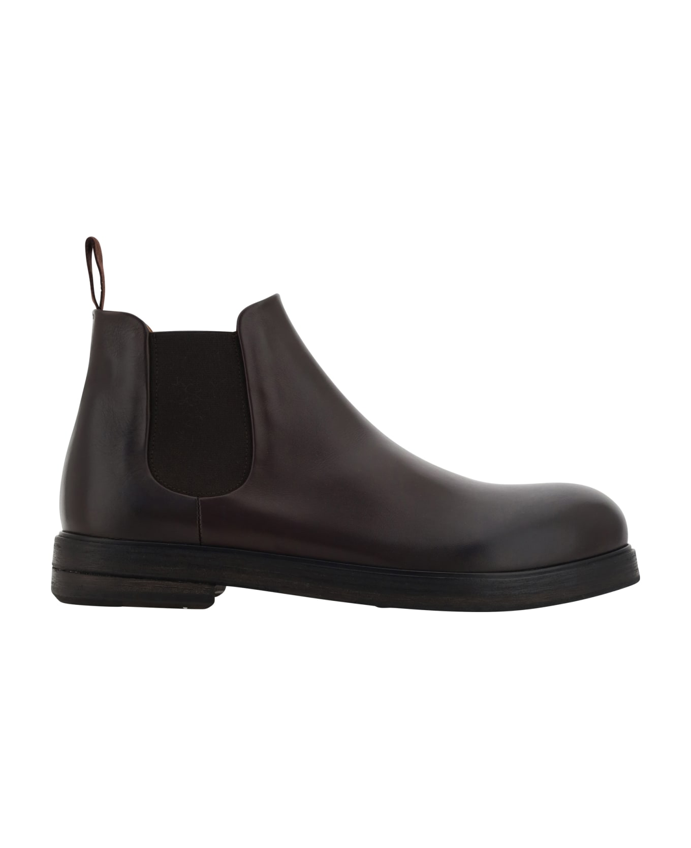 Calfskin zucca beatles boots by marsell, elastic bands on side panels, leather pullback for fit support, elongated round toe.