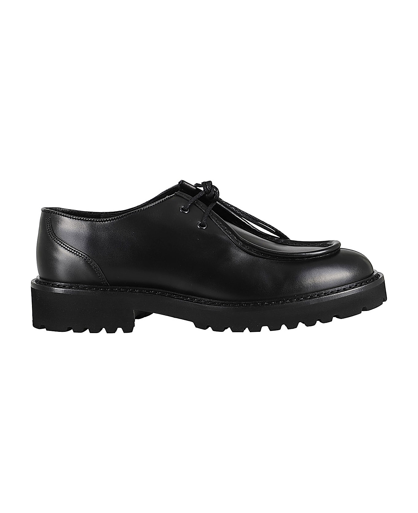 Shade lace-up - Doucal`s - Black color - Smooth leather upper - Almond toe - Exposed stitching - Two-hole lace-up closure - Rubber sole