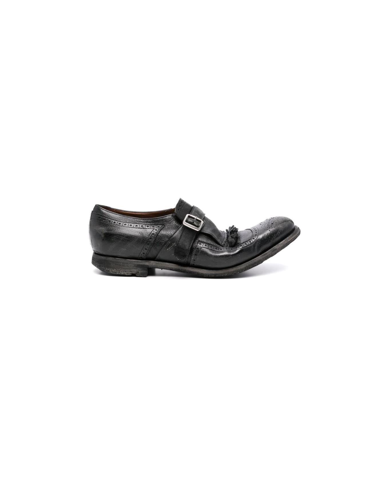 black calf leather distressed finish punched holes almond toe fringe detailing branded insole leather lining low stacked heel rubber outsole buckle-strap fastening This piece comes complete with a protective dust bag.