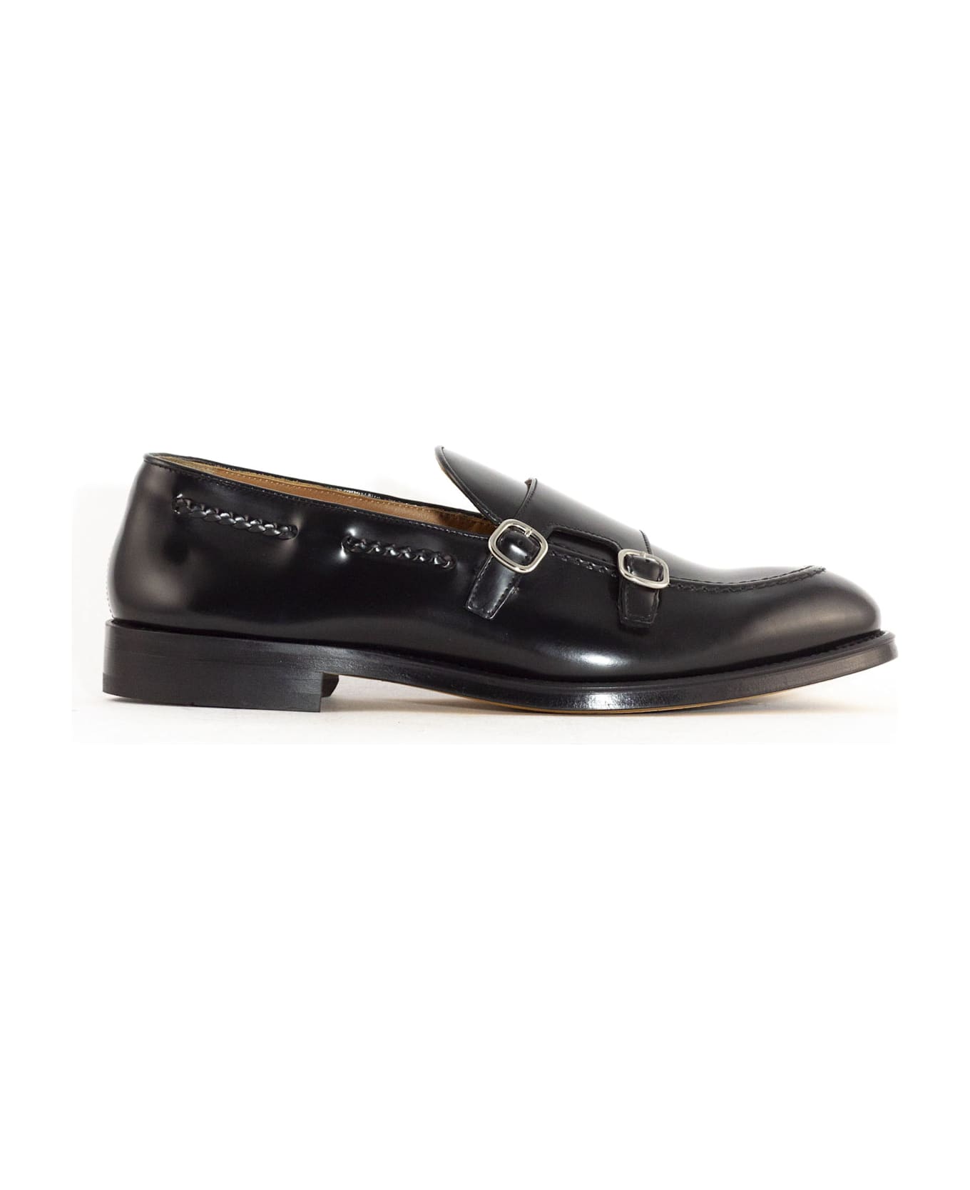 Black Calfskin Leather Double-buckle Loafers