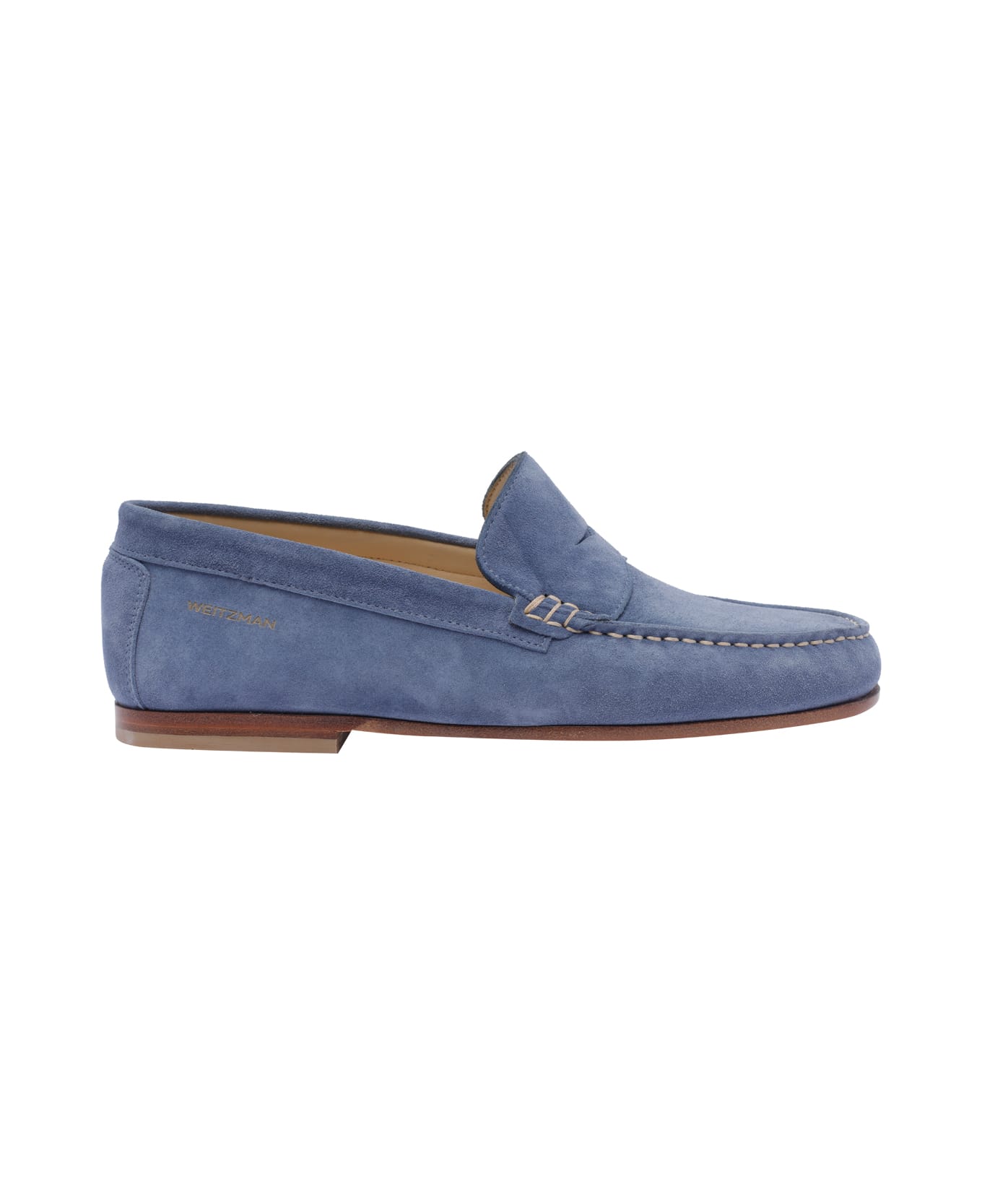 Stuart Weitzman denim blue Brady loafers, round toe, suede upper