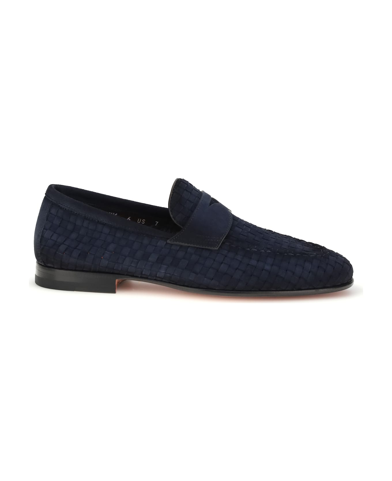 The carlo penny loafers by santoni express classic elegance thanks to the traditional welt and invisible-stitched tray, giving a clean, refined look. the formal, tapered line slims the silhouette, while the flexible goodyear construction ensures comfort and durability. the leather bottom with rubber half heel completes the model, embellished with the santoni logo imprinted on the insole with a woven design.
