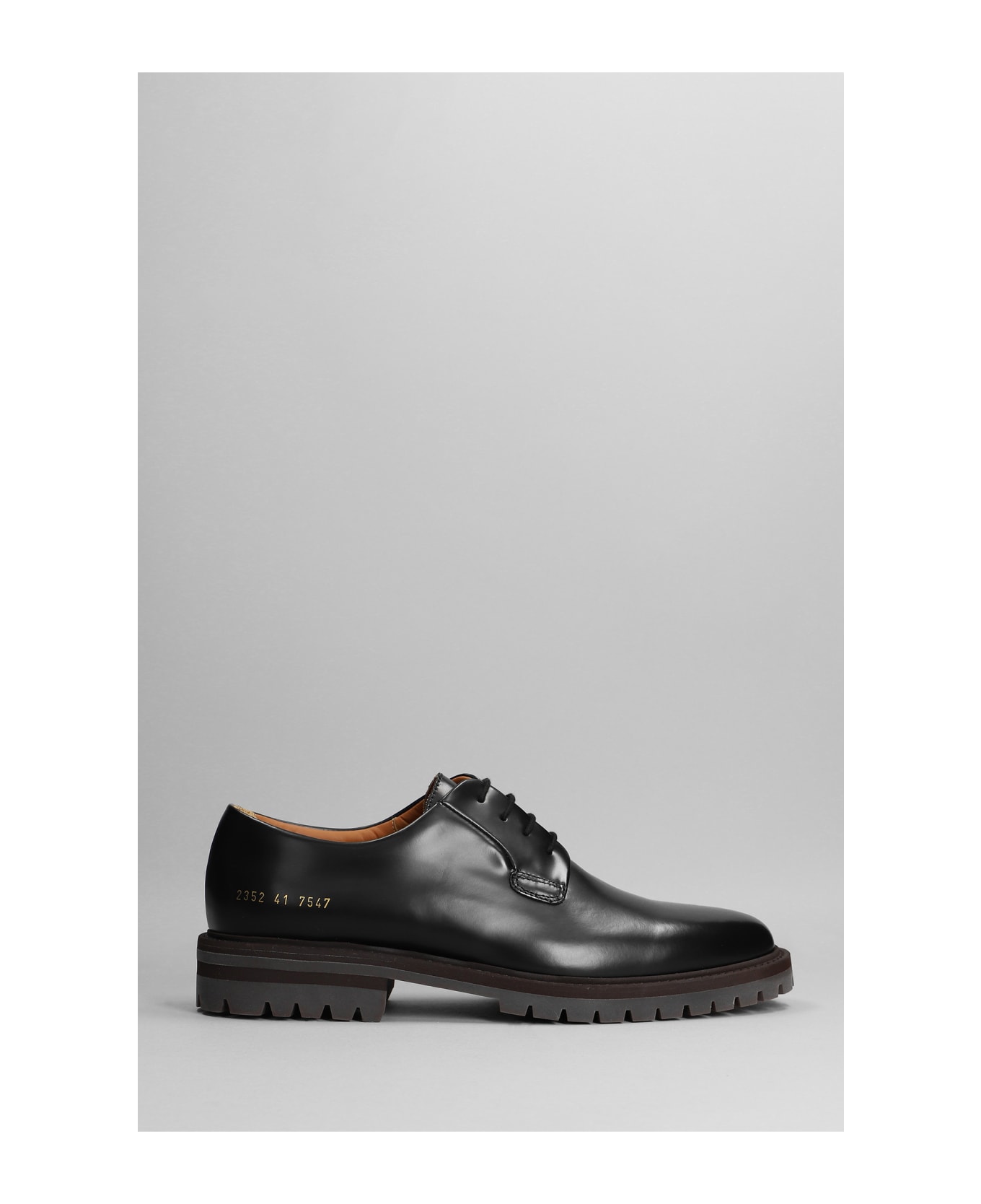 Derby Lace up shoes in black leather, almond toe, laces, engraved serial number, 100% leather, leather sole, Made in Italy