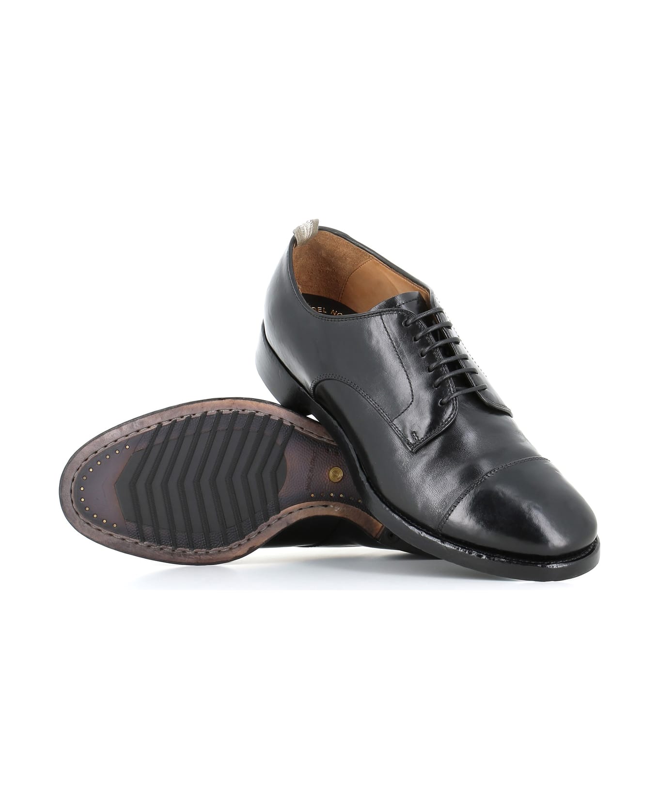 Black leather Derby with toe cap from Officine Creative, featuring by age-old effect made by to washing treatment. 'Blake Rapid' processing. Leather sole with rubber insert. Lined interior. Heel: 3 cm