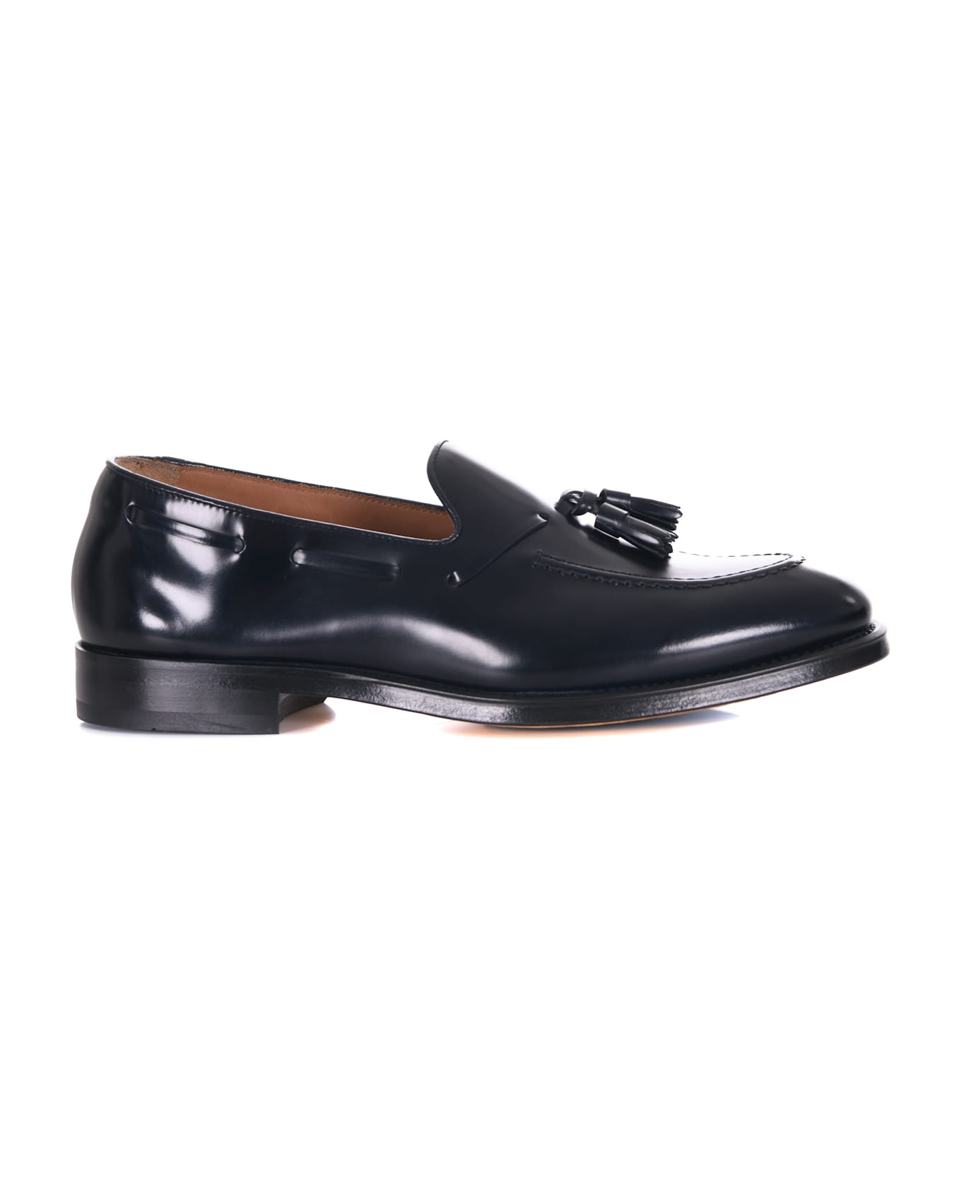 Doucal's moccasins in brushed leather. Embossed stitching. Tassels on the vamp and leather lace around. Leather sole with rubber insert for greater stability. Size in photo 41 100% leather