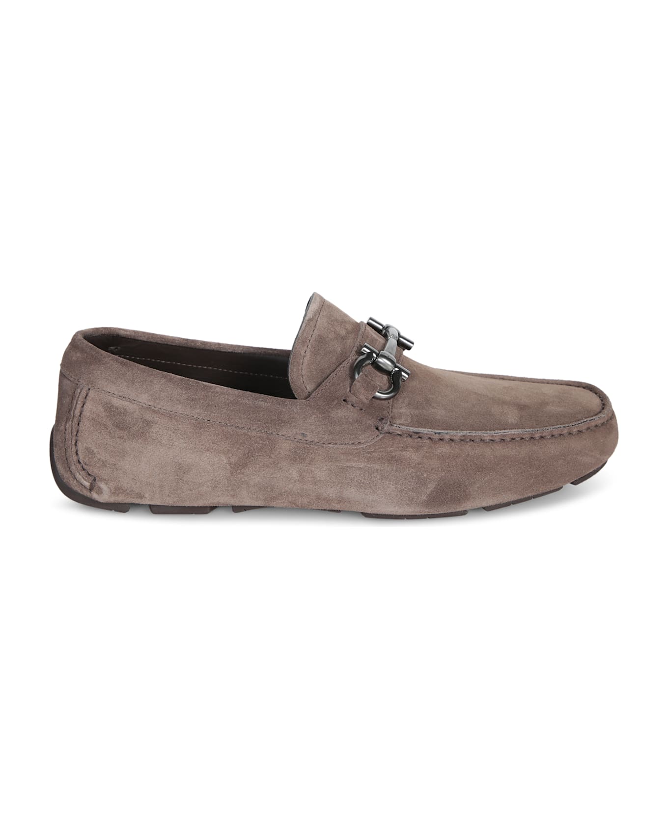 Featuring an elegant and leisurely silhouette, these Driver Parigi New Gancio Loafers by Ferragamo are crafted in soft brown suede with iconic metal details. The refined design is complemented by a durable rubber sole for optimal longevity and comfort. Composition: 100% Calf Leather
