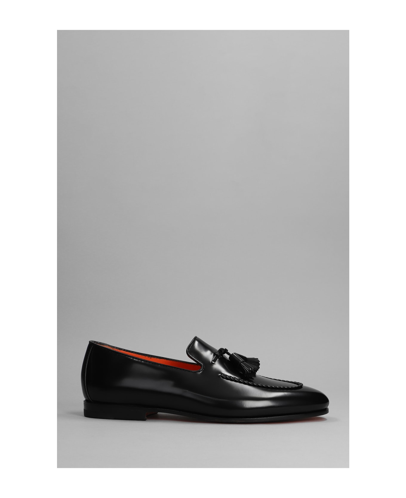 Grizzly Loafers in black leather, fringed tassel, almond toe, leather sole, 100% leather, Made in Italy