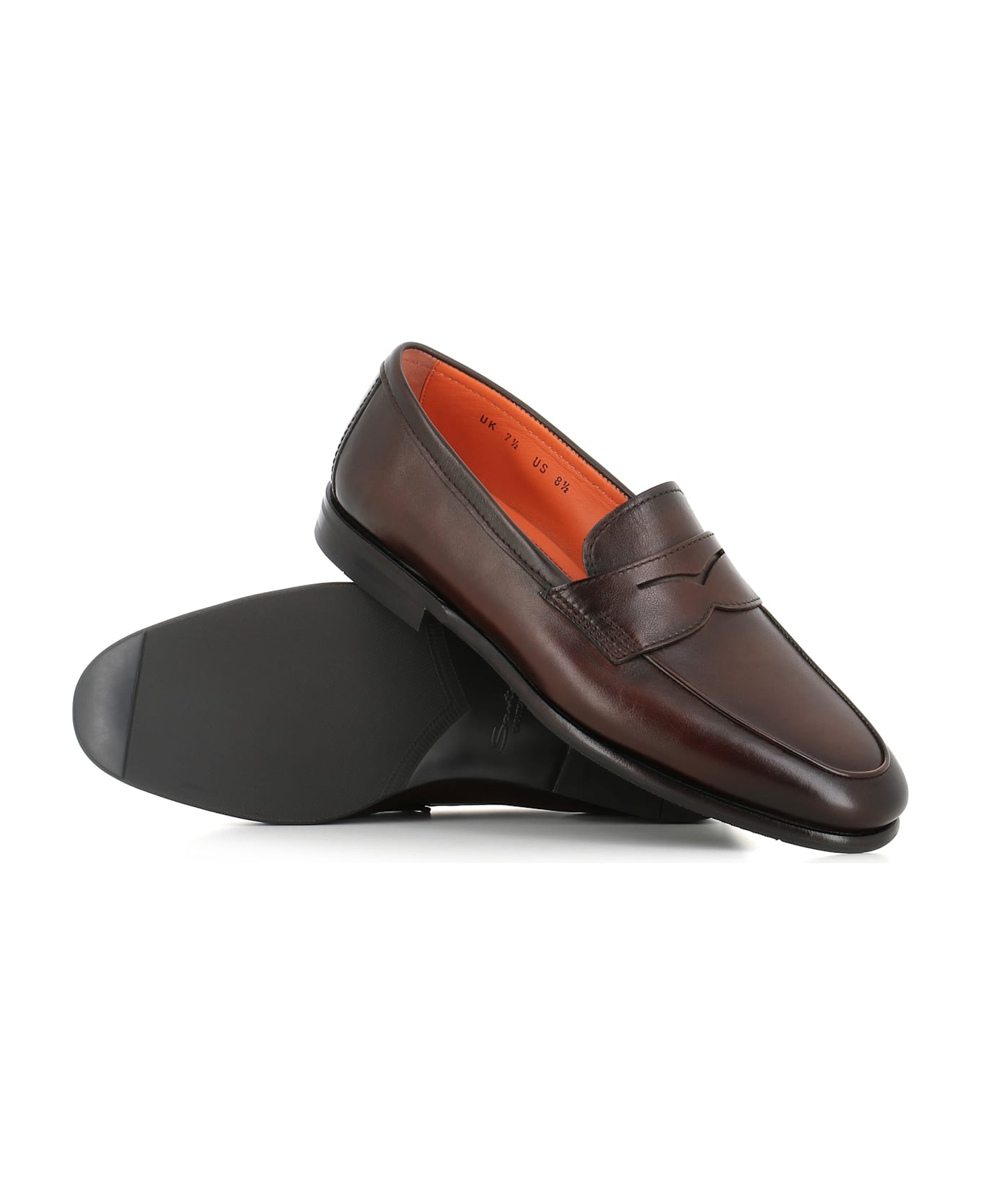 Dark brown leather men loafer by Santoni, featuring by a 'Goodyear' artisan manufacturing. Flexible caoutchouc sole. Lined interior. Heel: 2 cm