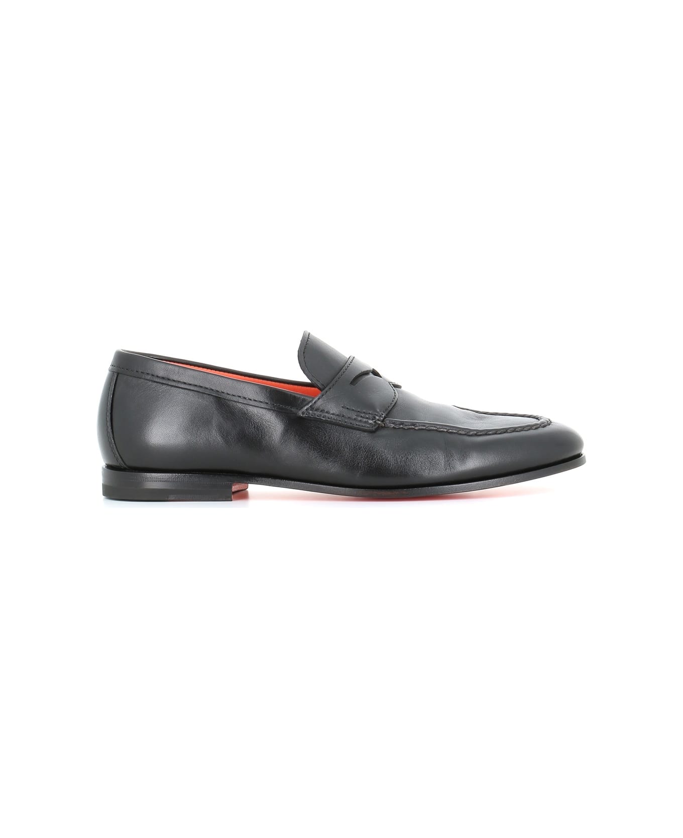 Black soft leather Loafers from Santoni, featuring by a 'Goodyear' artisan manufacturing. Flexible leather sole. Lined interior. Heel: 2 cm