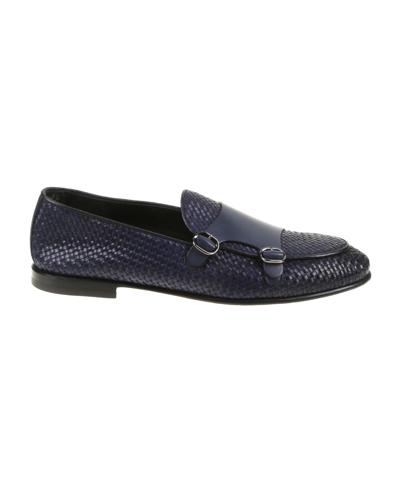 Barrett double buckle blue mocassin made of calf leather with leather sole and insole.
