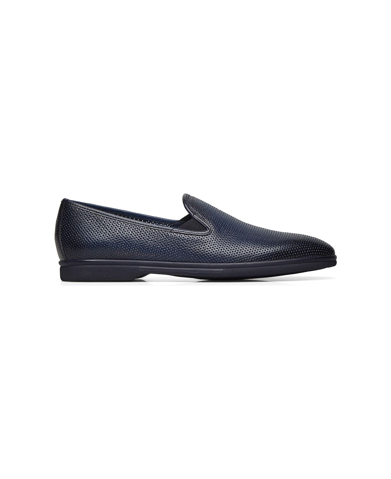 elasticated slip-on loafer in navy-blue calfskin with a slim silhouette, rounded toe and extremely comfortable rubber sole. colour: blue material: calfskin