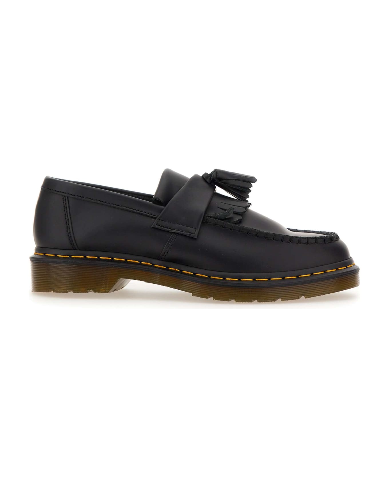 Dr. Martens "Adrian Ys" Carrara leather mocassin, untreated, vegetable tanned, black colour, matching upper tassels, escutcheon with fringes and matching tassels, air-cushioned sole, iconic Goodyear yellow stitching, total height 3cm.
