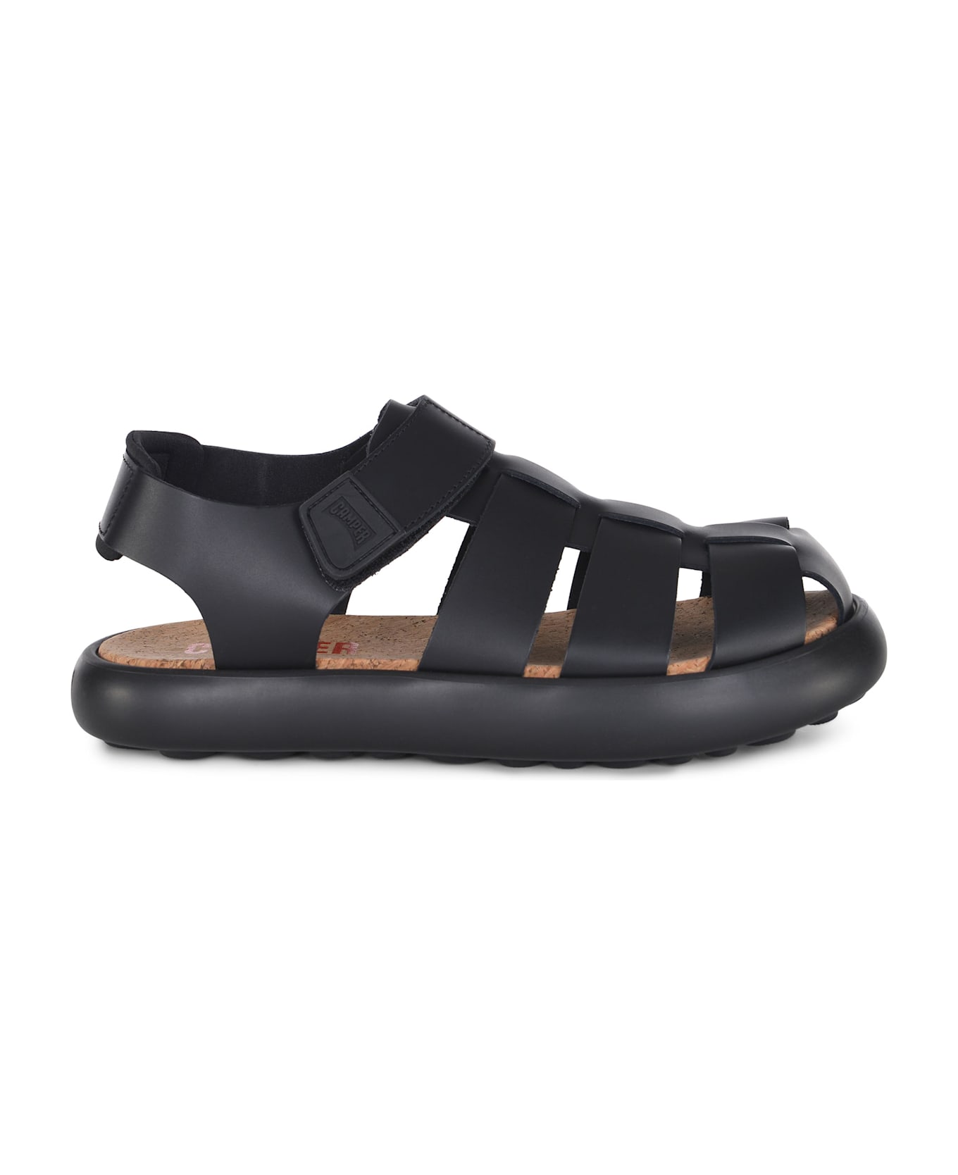 Camper sandals "Ppelotas Flota San" made of black leather. Open toe. Adjustable strap closure. Anatomical footbed. EVA sole. 68% leather 32% polyester