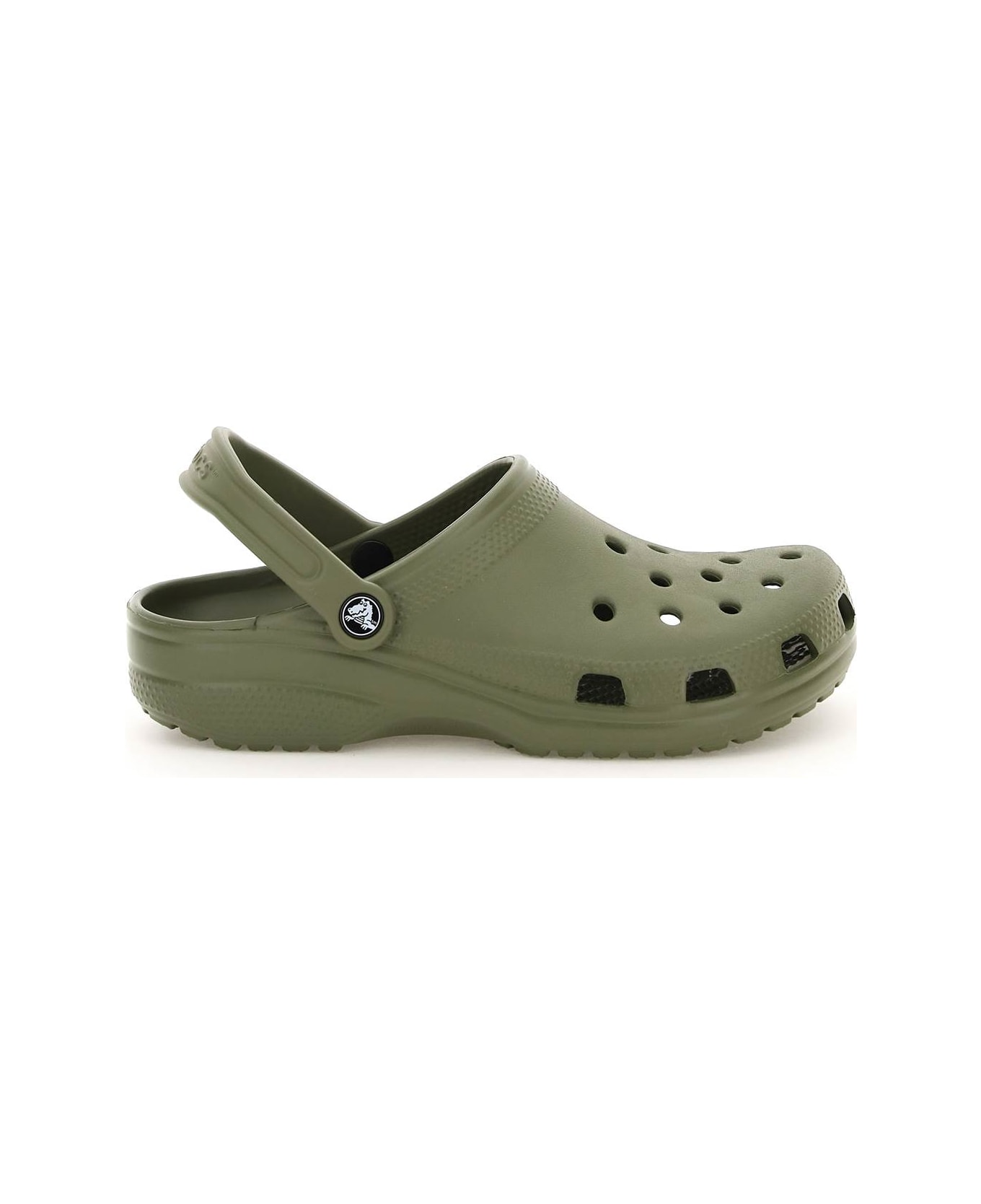 Classic CROCS sabot made with light and resistant material. Round toe design with holes on the upper, movable strap on the back with logo button detail on the sides. Inside with comfort crocs technology. Rubber outsole.