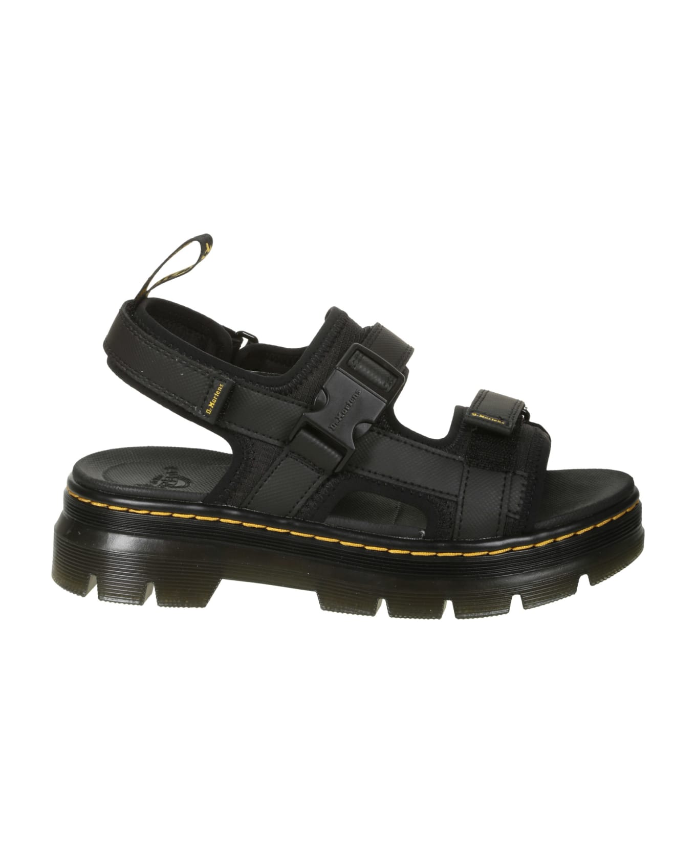 Dr. Martens Sandal in black leather, closure with clips, adjustable bands, non-slip rubber sole. Composition: 100% Leather Composition: 50% Leather, 50% Textile