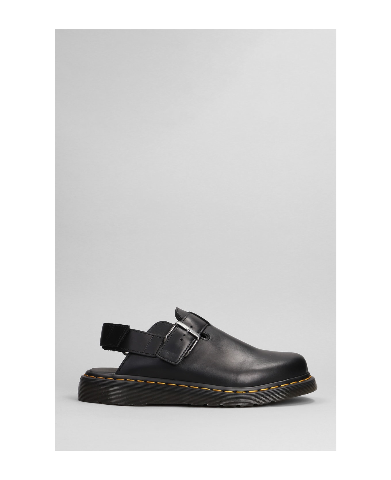 Jorge II Slipper-Mule in black leather, almond toe, back metal detail, contrasting stitching, rubber outsole, Made in Vietnam