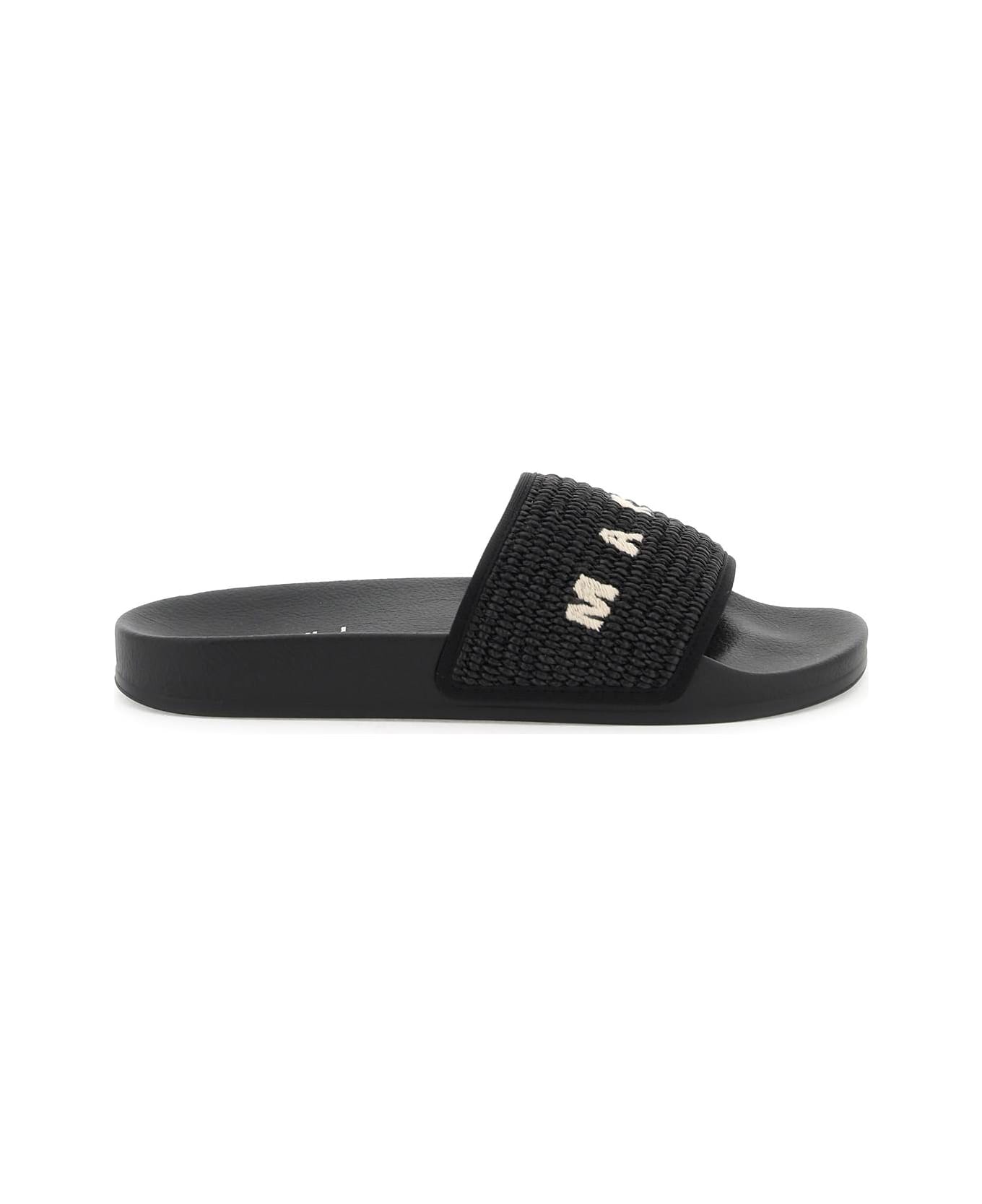 Marni slides characterized by the raffia strap with contrasting lettering logo and by the rubber base with moulded footbed. Rubber sole. Composition: 52% CO, 48% PA