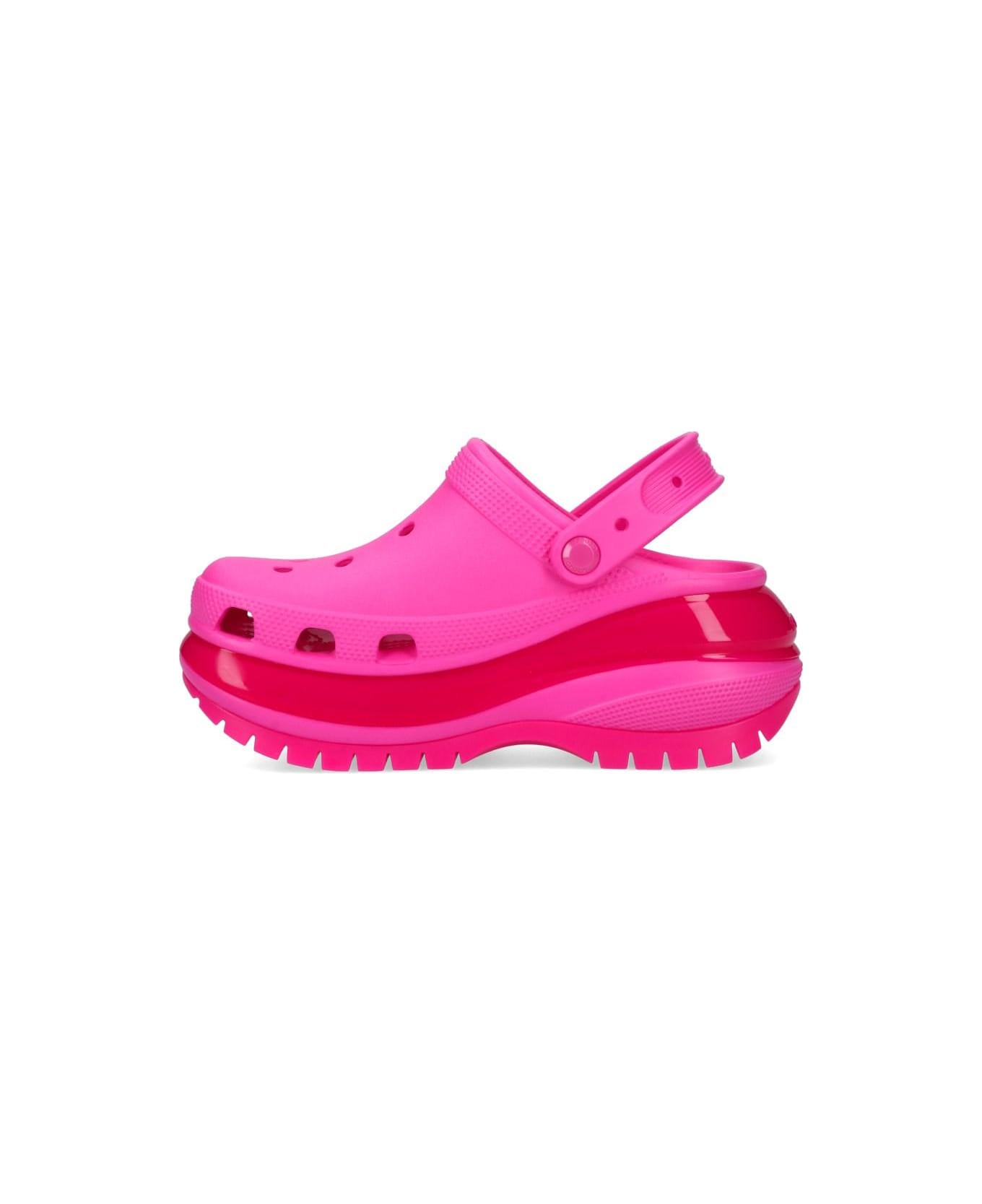 Crocs Mega Crush fuchsia mules in Croslite with round toe, perforated upper, adjustable strap at the back, maxi sole with embossed logo detail at the back.