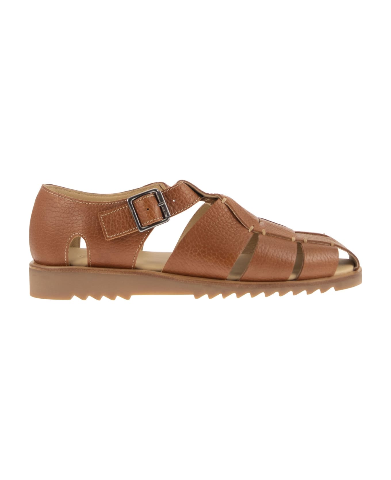 These sandals were originally created for the 'Chartreux' monks. They are footwear created specifically for walking. Sandal with 3 straps and a buckle closure for better adjustment. Leather lined, bonded construction on genuine rubber sole. DESIGNER ID: 1233 46
