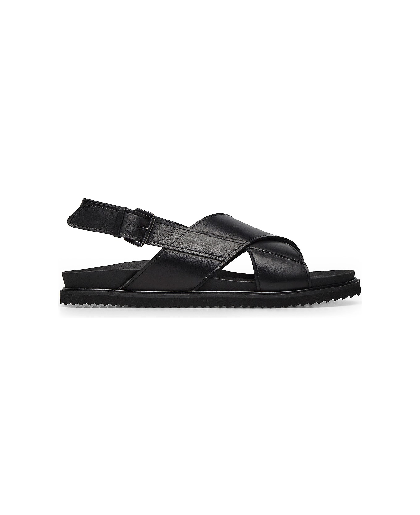 leather sandal with crossed straps on the front. rubber sole. colour: black material: nappa