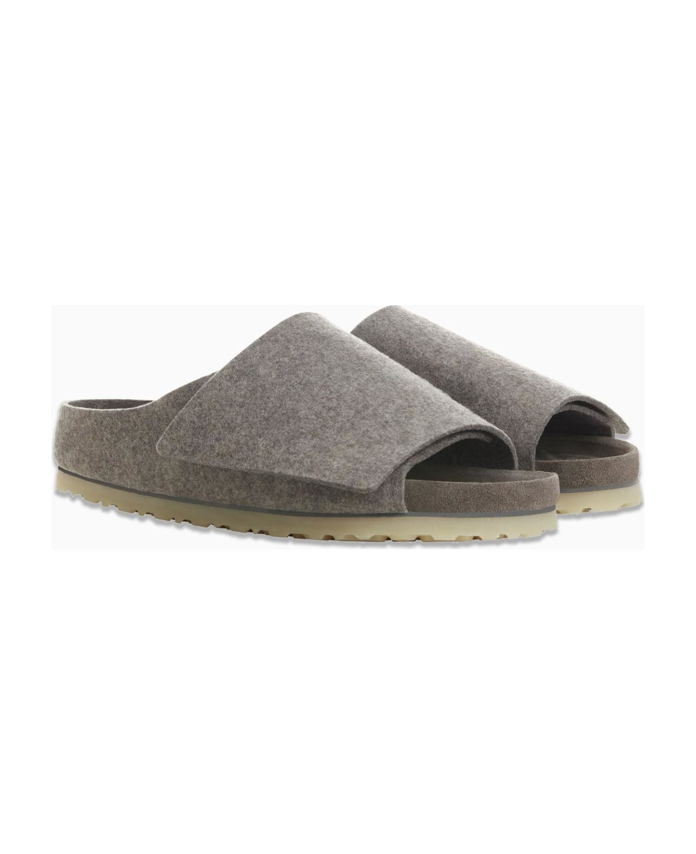 Slide by Fear of God made in collaboration with Birkenstock made of ash melange felt upper, leather lining, logoed insole, rounded toe and rubber sole.