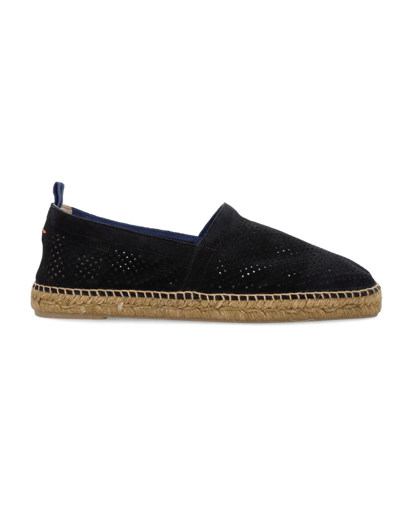 Suede Leather Pablo Pierced Espadrille By Castañer. Featuring: Square Toe Perforated Suede Upper Rear Pull Tab Jute Outsole Vulcanized Rubber Sole