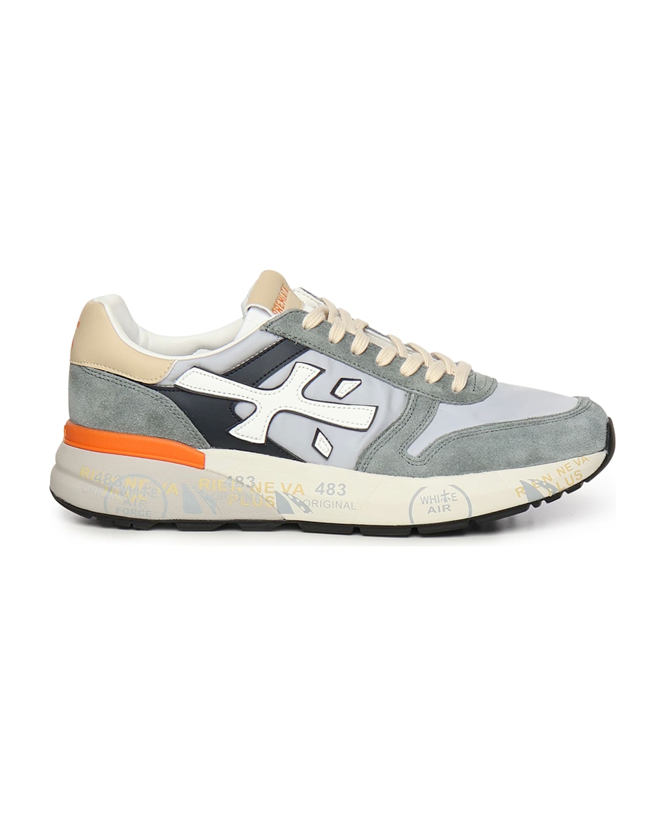 -Shoes model sneakers high -Upper in nylon and suede -Color light gray and white -Logo in contrast smooth leather -EVA rubber sole height 4 cm -Removable plantar -Chisura with colored cotton laces -Colour: grey/orange