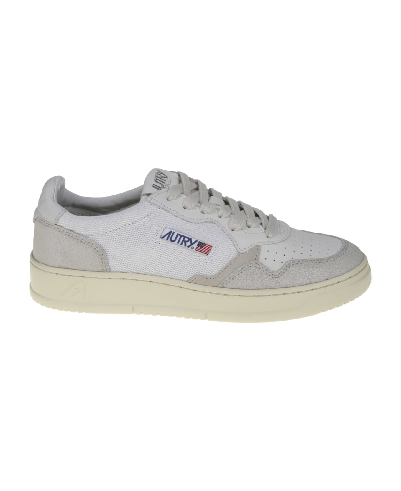 Autry White leather sneaker, nylon and suede insert, white detail on the back, rubber sole. Composition: 60% + Goat Leather, 20% + Nylon, 10% +mesh, 10%