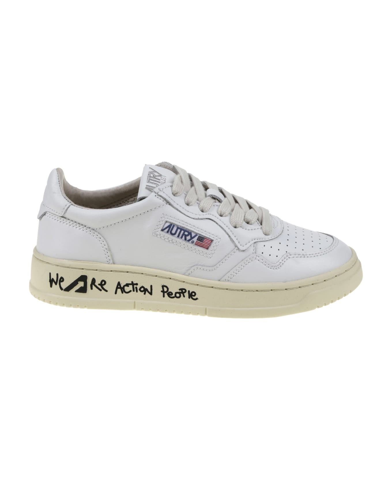 Autry Sneaker in white leather, insert in the sole, logo detail, perforated toe, rubber sole.
