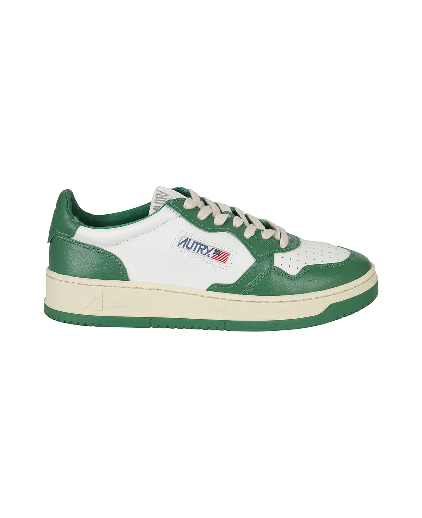 Autry Sneaker in green and white leather, perforated toe, side logo insert, on the tongue and on the back, rubber sole.
