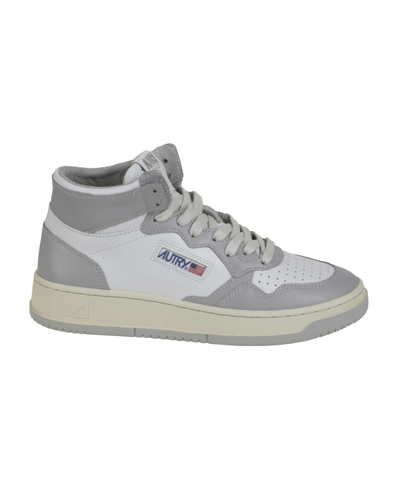 Autry leather sneakers, ankle boot model, logo detail, rubber sole.