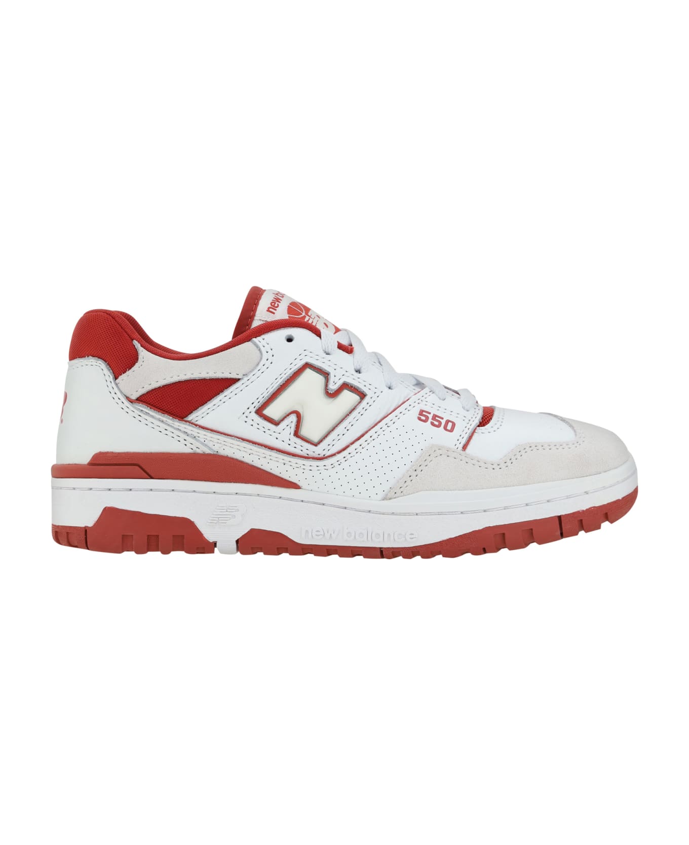 Calfskin 550 sneakers from new balance, lace-up front closure, embroidered brand logo patch on front tab, slightly elongated toe, embossed tone-on-tone brand logo on side sole, perforated side panels, iconic brand logo on side panels, logo-embossed press stud insole, contrasting brand logo on back, paneled design, suede inserts.