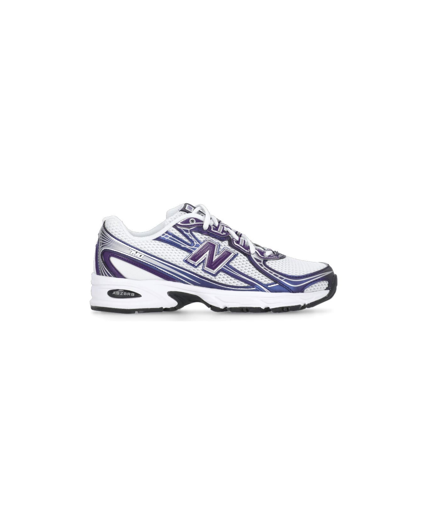 - White New Balance tech fabric sneakers for woman - Round toe - Front laces fastening - Logoed tongue - Side contrasting color inserts - Raised rubber sole (4. 5 cm)