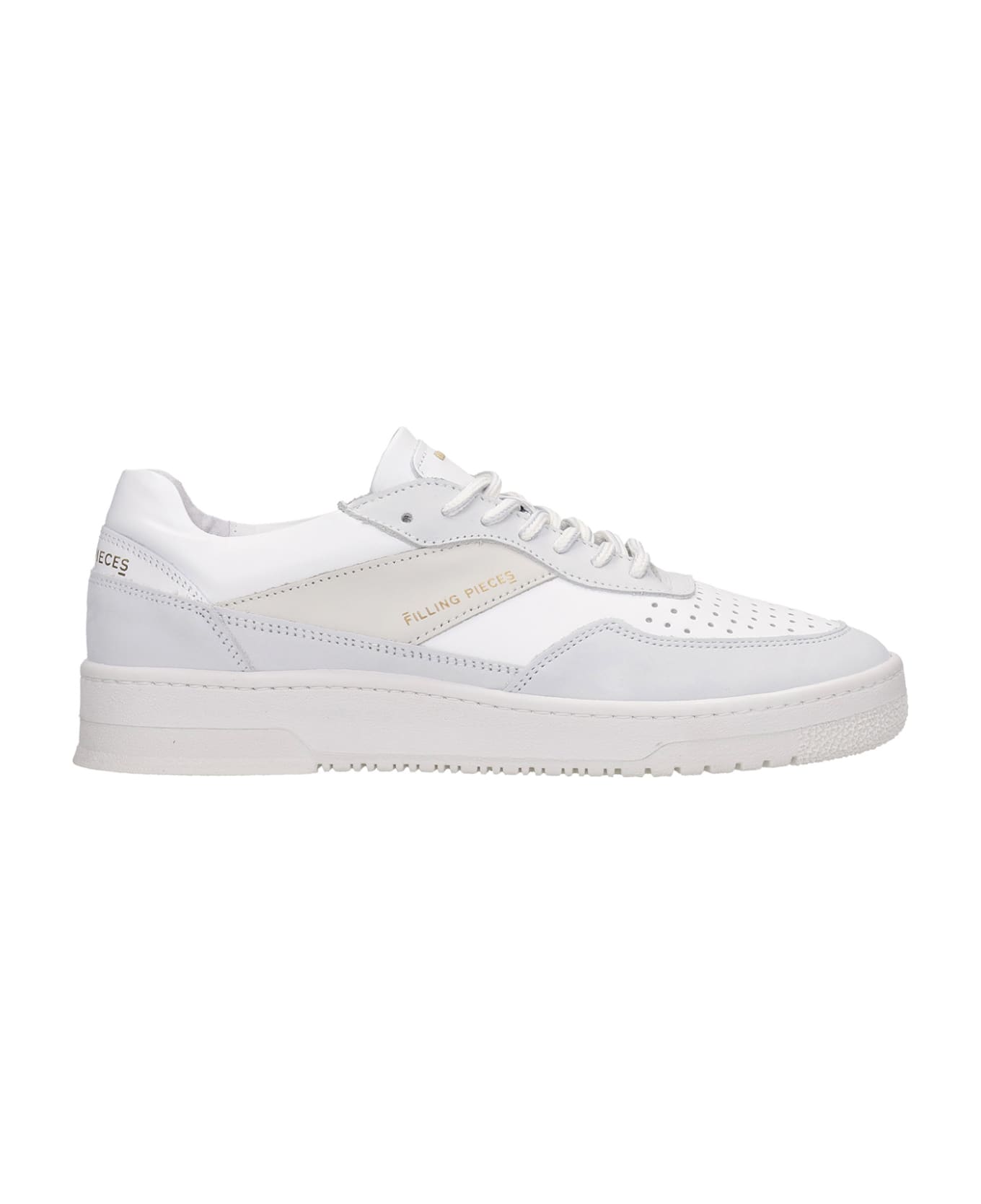 Ace Spin Sneakers in white leather, laces, rubber outsole, logo on heel, perforated upper toe, suede details, 100% leather, Made in Portugal