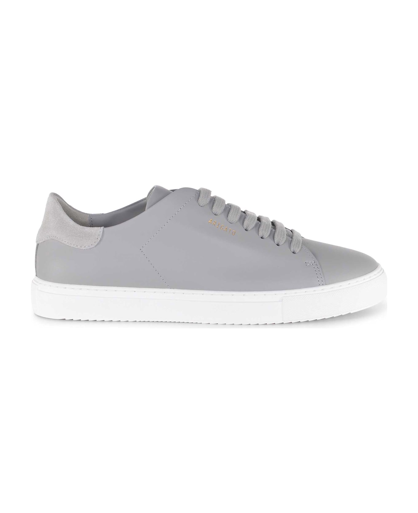 Axel Arigato "Clean90" sneakers made of Light Grey leather. Tone-on-tone suede inserts. Round toe. Lace-up. Tone-on-tone lace. Contrasting Gold "Arigato" lettering engraved on the side. Padded, removable insole. Grey rubber sole. Tone-on-tone logo lettering on the back. 3cm sole 100% Rubber sole 100% Leather Composition: Pelle