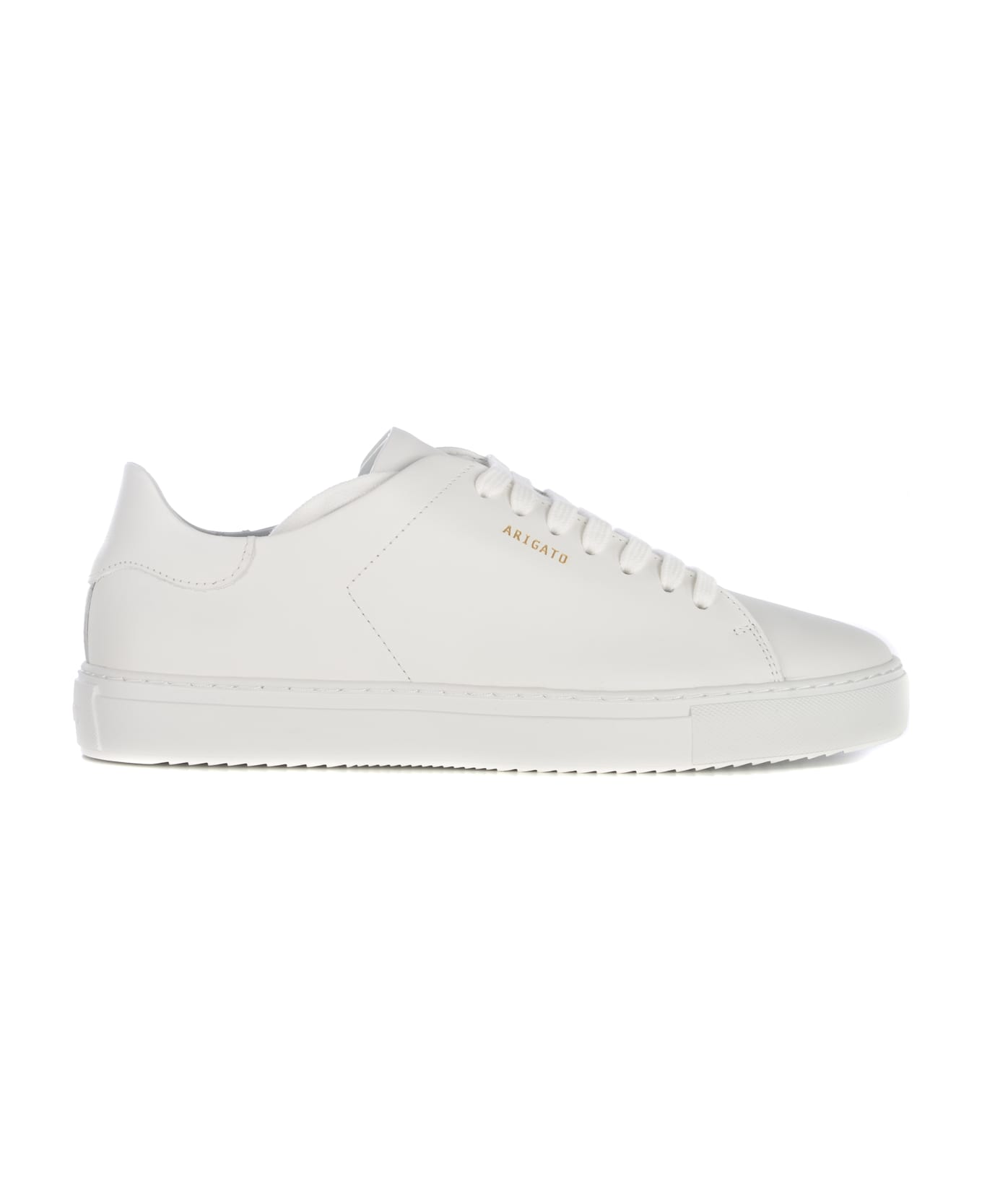 Axel Arigato "Clean90" sneakers made of White leather. Round toe. Lace-up. Tone-on-tone laces. Contrasting Gold "Arigato" lettering engraved on the side. Padded, removable insole. White rubber sole. Tone-on-tone logo lettering on the back. 3cm sole 100% Rubber sole 100% Leather Composition: Pelle