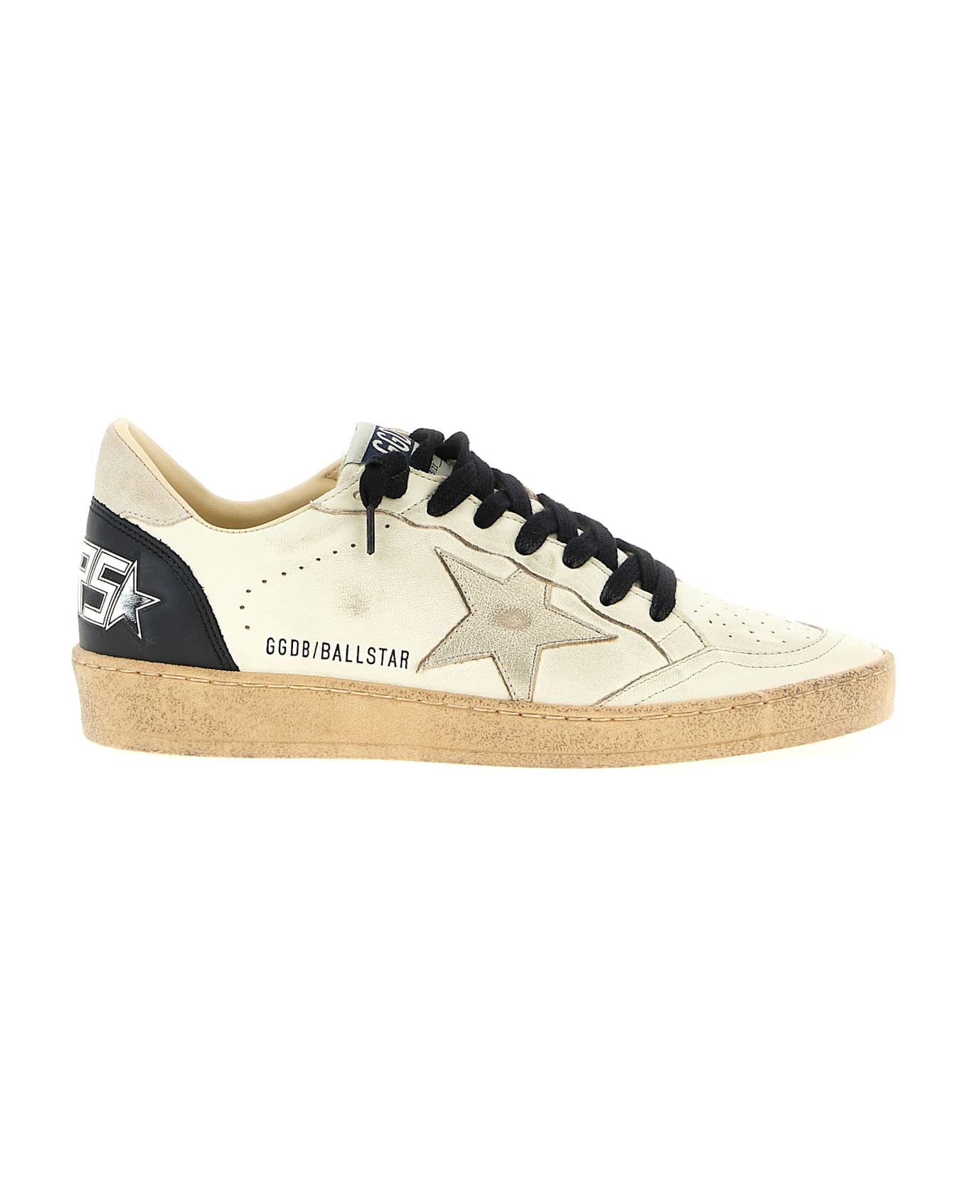 'Ball Star' low-top sneakers in used leather and suede effect, laminated leather side star, contrasting heel, laces and rubber sole.