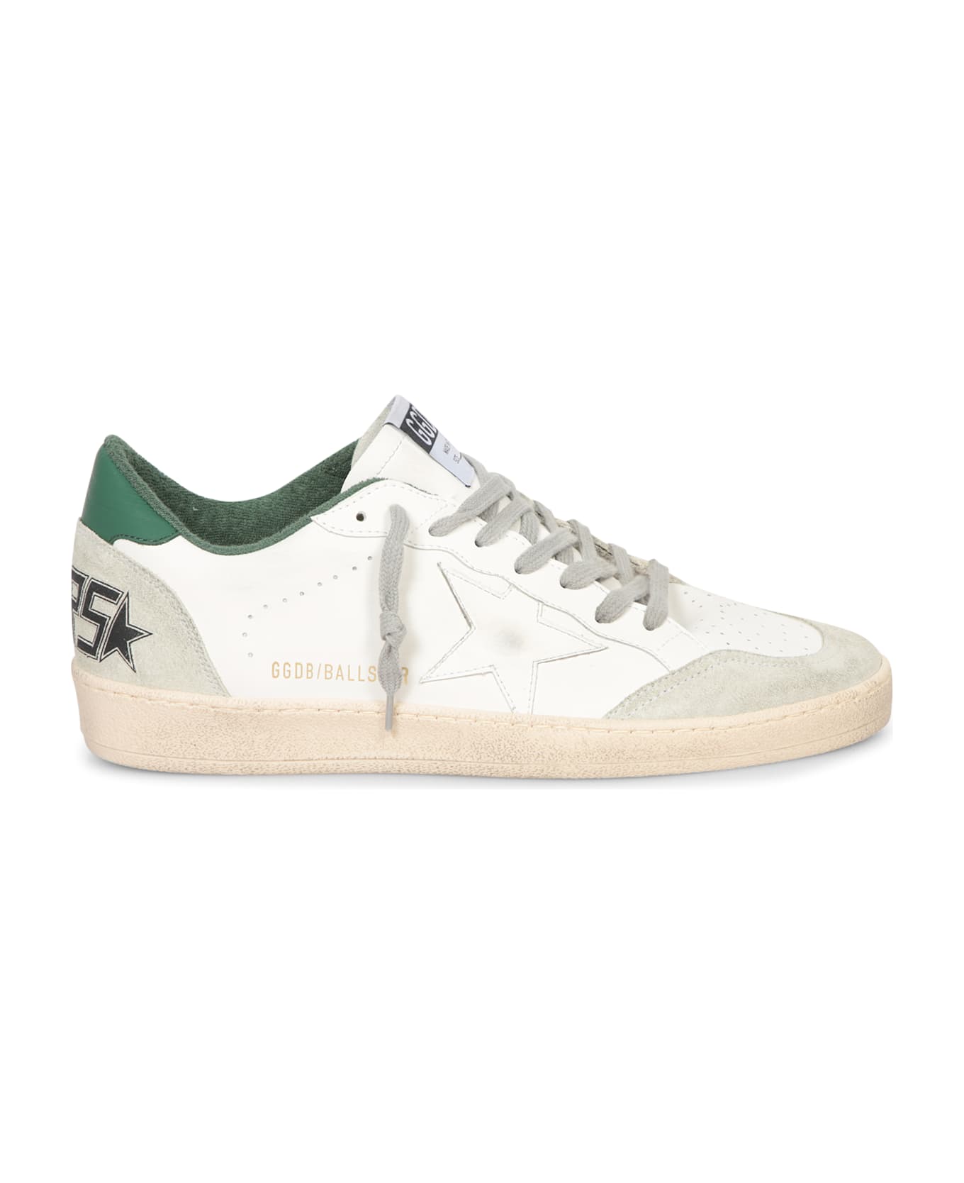 Golden Goose's Ballstar combines vintage style and contemporary details, marked by green and beige colors on a white base and a distinctive side star that catches the eye.