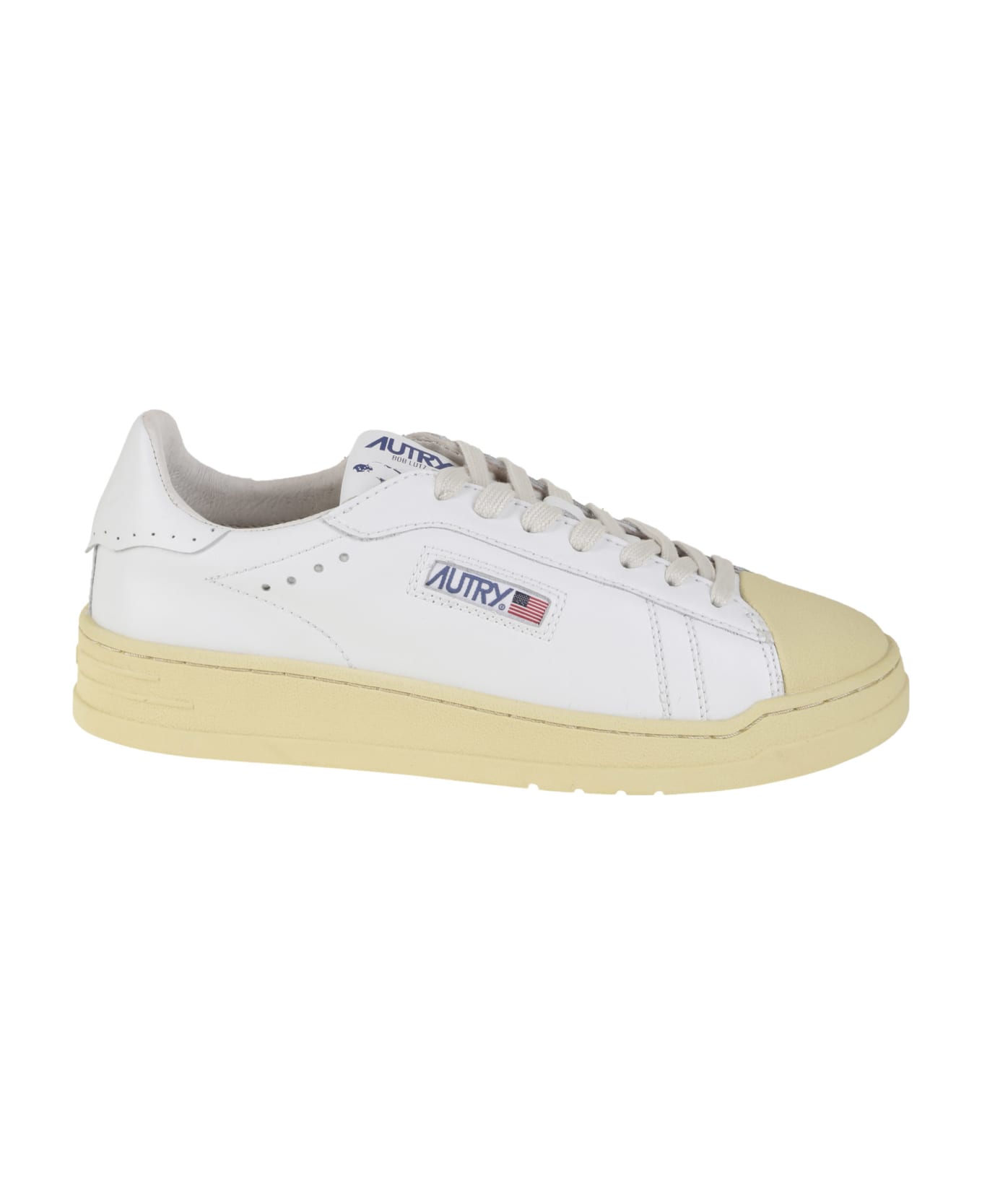 Autry Sneaker in white leather, rubber toe insert, rubber sole, logo detail.