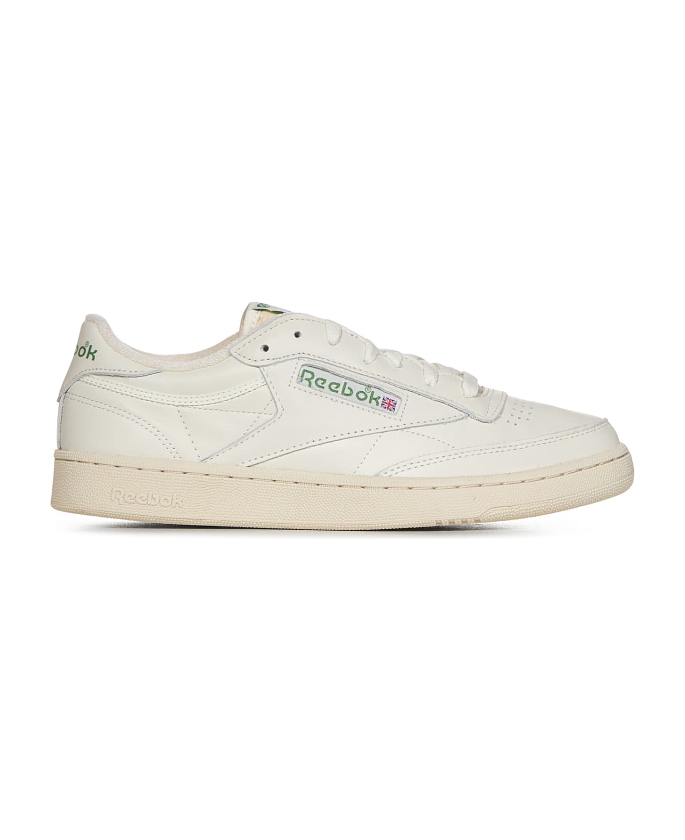 Logo label at tongue, logo detail at side upper; Green logo printed at heel