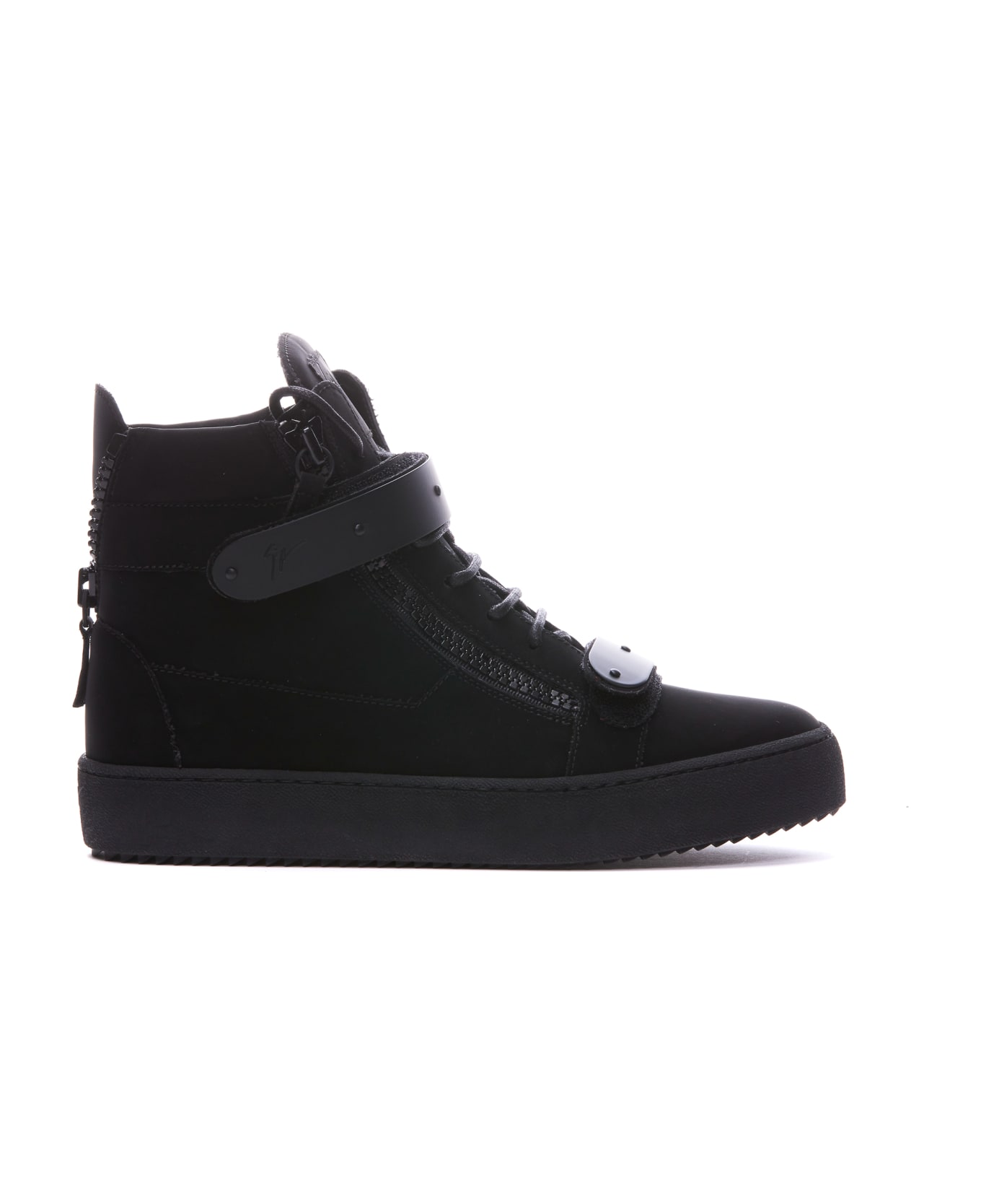 Giuseppe Zanotti Coby sneakers, round toe, lace closure, velcro closure, zip on sides, velvet upper, rubber sole Composition: 100% Leather, Rubber Sole