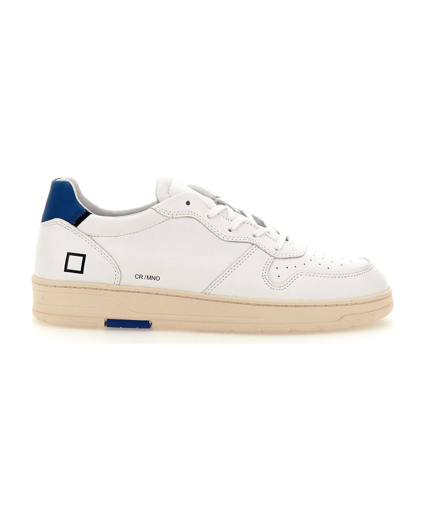 D. A. T. E "Court Mono" men's leather sneakers, white, flat laces in the same color, logo on tongue,