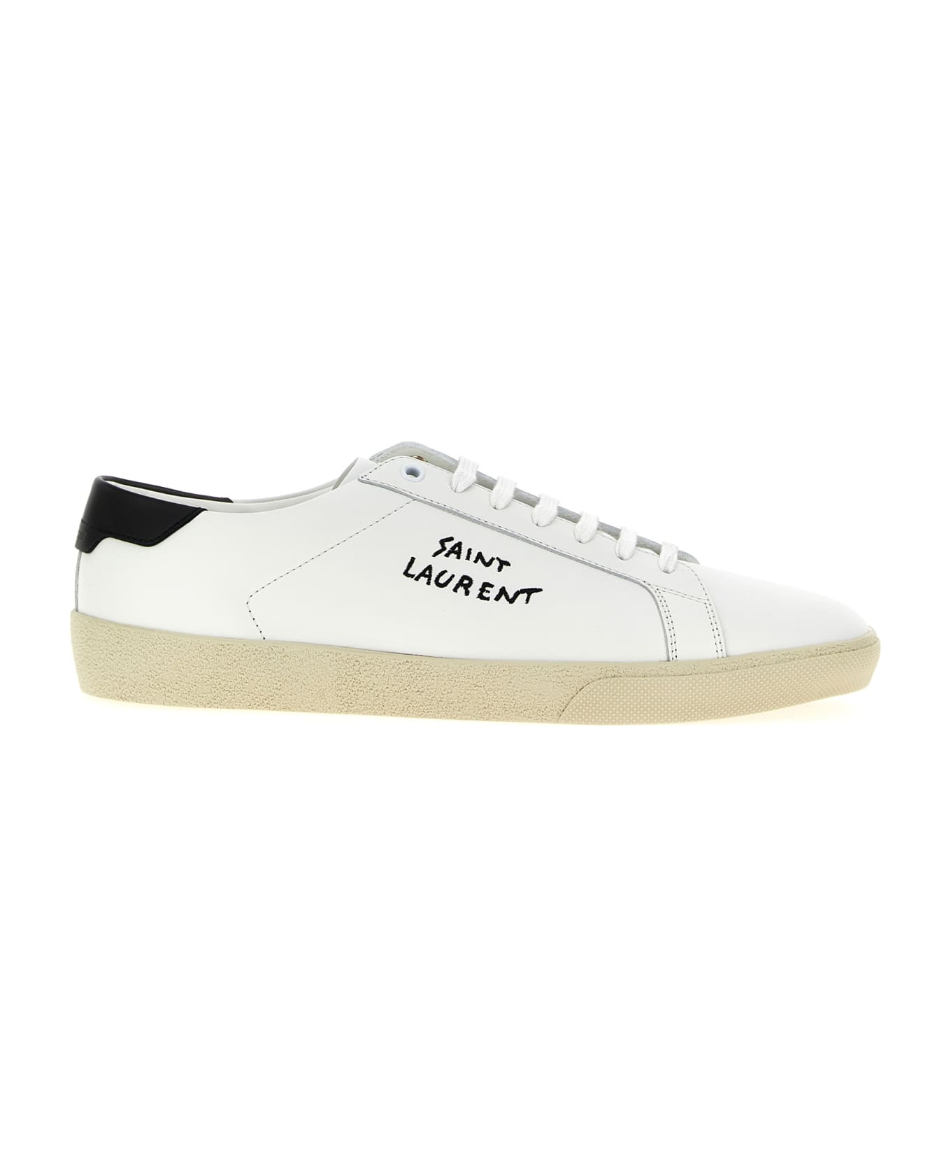 'Court SL/06' leather sneakers with logo print, lace-up closure, rubber sole, contrast heel. Composition: 100% calfskin leather