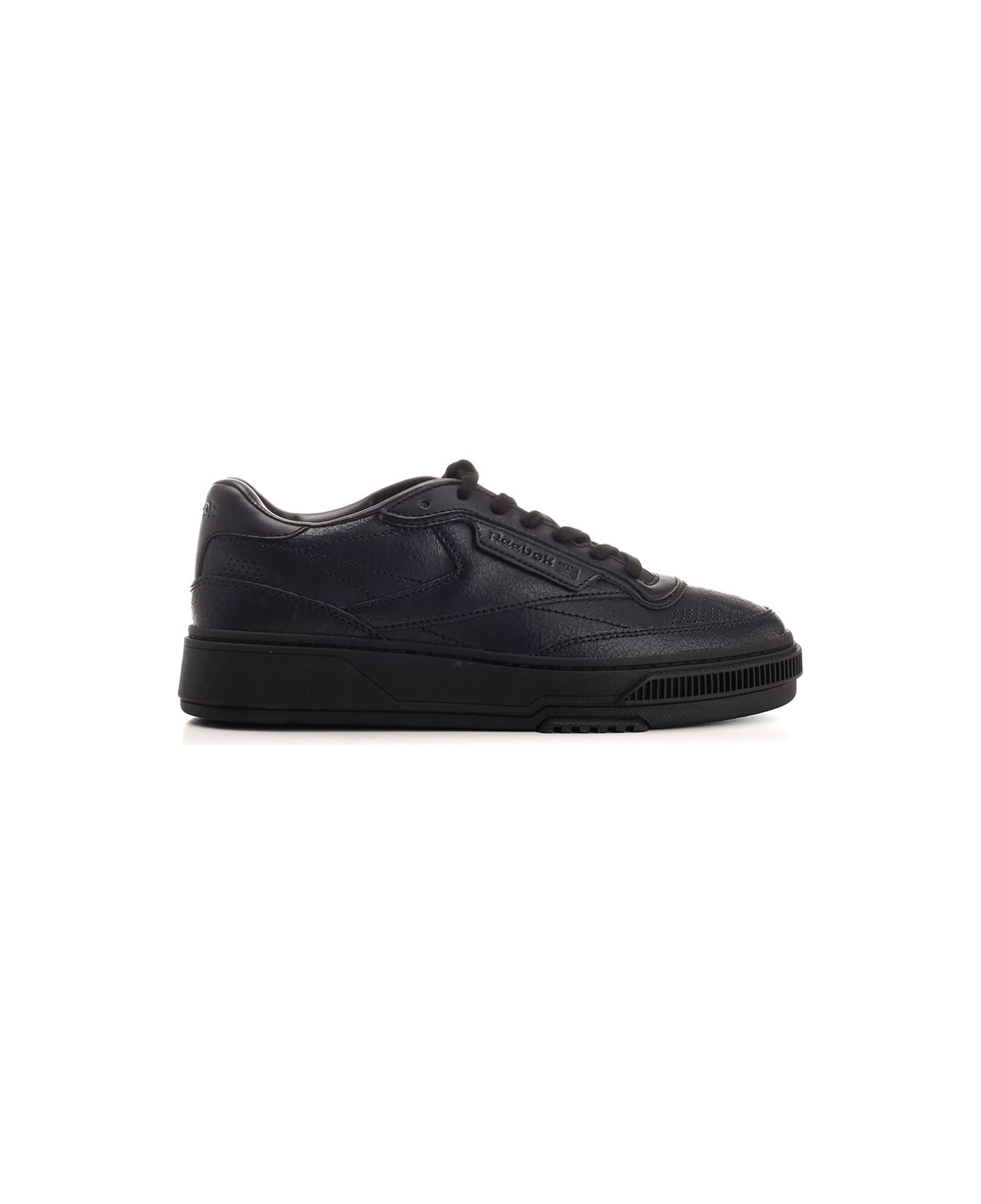 Cracked black "Club C LTD" sneakers in black leather from Reebok, with logo engraved on one side of the upper, on the tongue and on the heel, EVA midsole, rubber outsole and front lace-up closure.