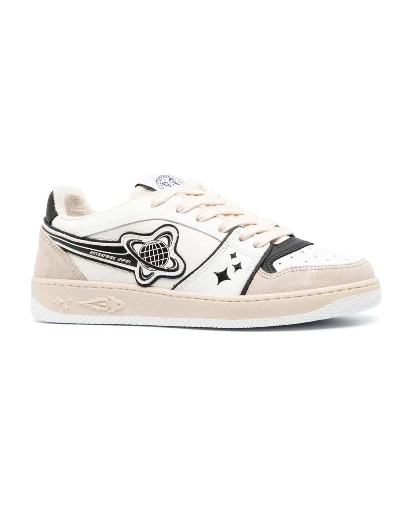 EJ Planet low-top leather sneakers, taupe/black/milk white, calf leather, perforated detailing, panelled design, logo patch to the side and tongue, embroidered logo to the rear, branded leather insole, round toe, front lace-up fastening, flat leather sole