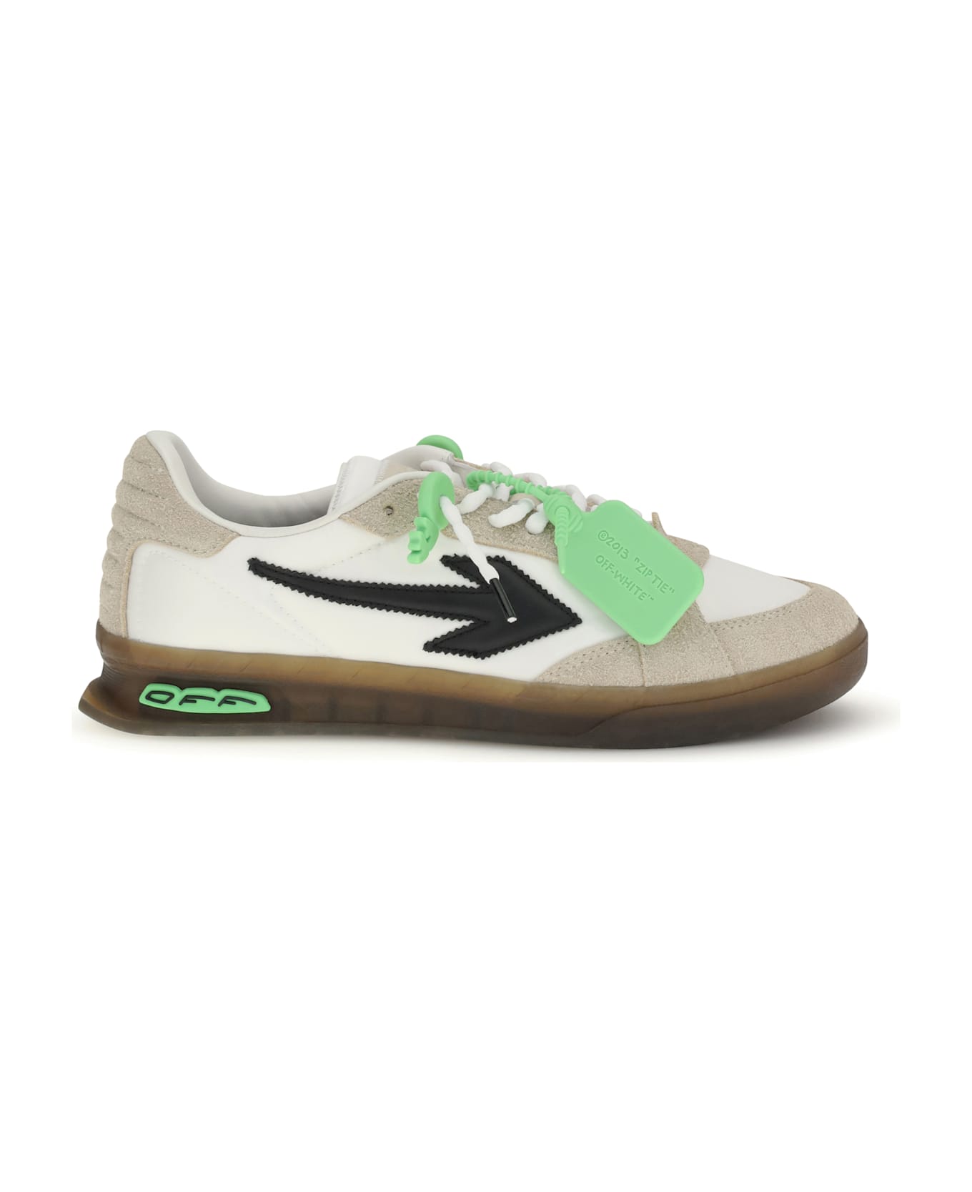 The end of play sneakers by off-white feature a clean, versatile design enhanced by the brand s iconic details. they showcase the arrow motif on the side, the famous zip tie, textured laces, and a branded tongue and heel, combining understated elegance with a style instantly recognizable to footwear enthusiasts.