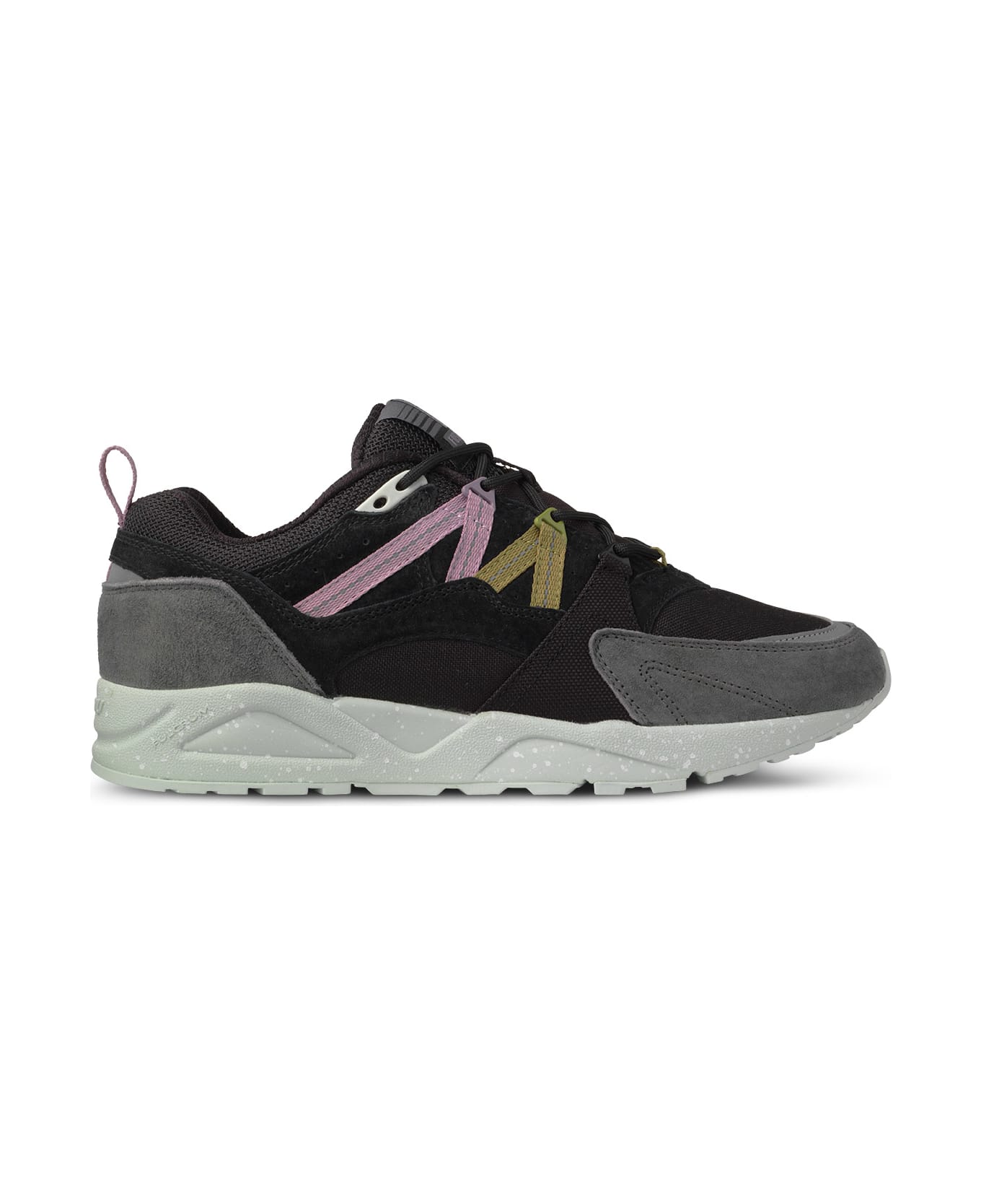 Karhu Sneaker in black fabric, gray suede inserts, rubber sole.