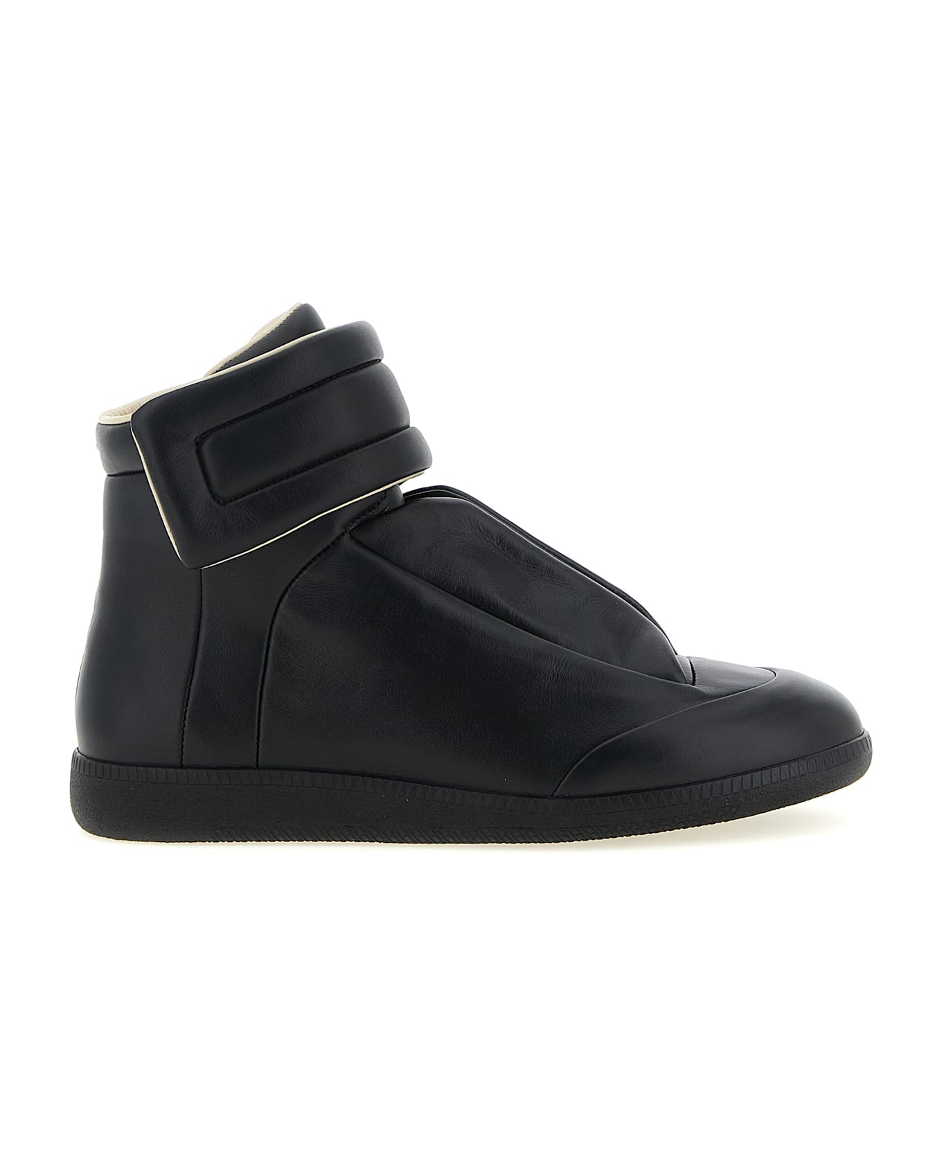 Future' seamless calf leather sneakers with concealed laces, 'Numeric Signature MM6' patch tab hidden by a velcro strap, almond toe, rubber sole. Composition: 100% calfskin leather (Bos Taurus)