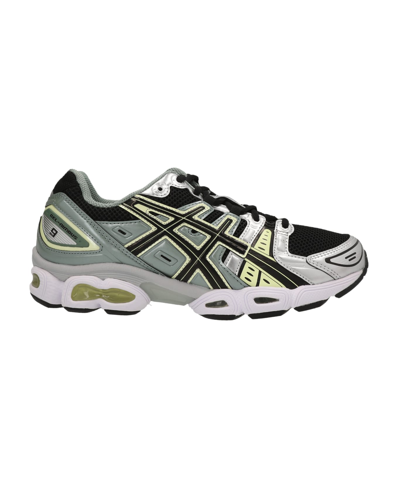 Gel-Nimbus 9' laminated leather and mesh fabric sneakers with contrast rubber details, lace up and a rubber sole.
